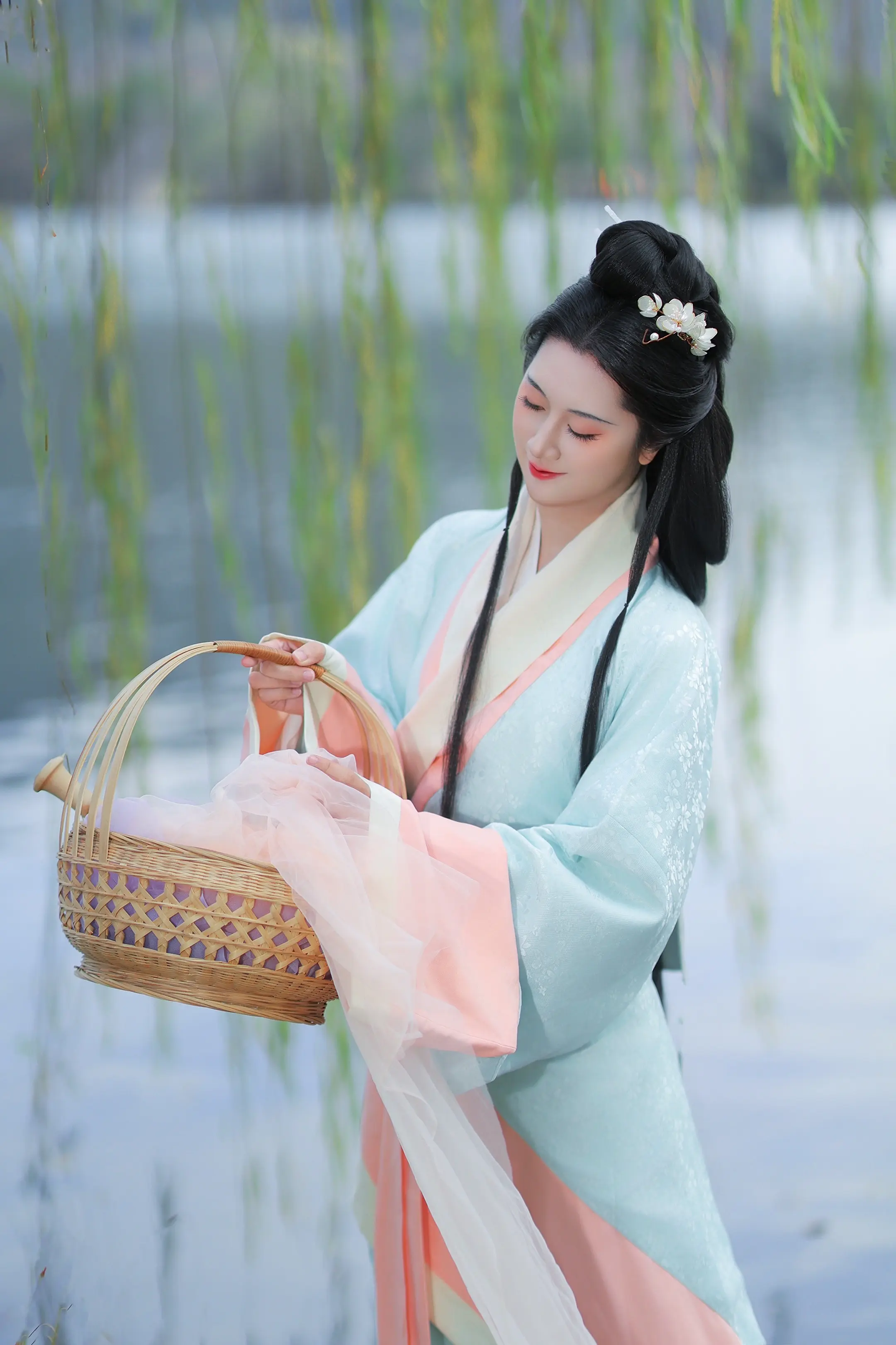 西施浣纱图。给客妹拍的西施。一整个温柔住了~ 特意跑到越王城遗址去拍的,当时西施也许就是这样在溪边浣纱的。像圆了一个两千多年前的梦~