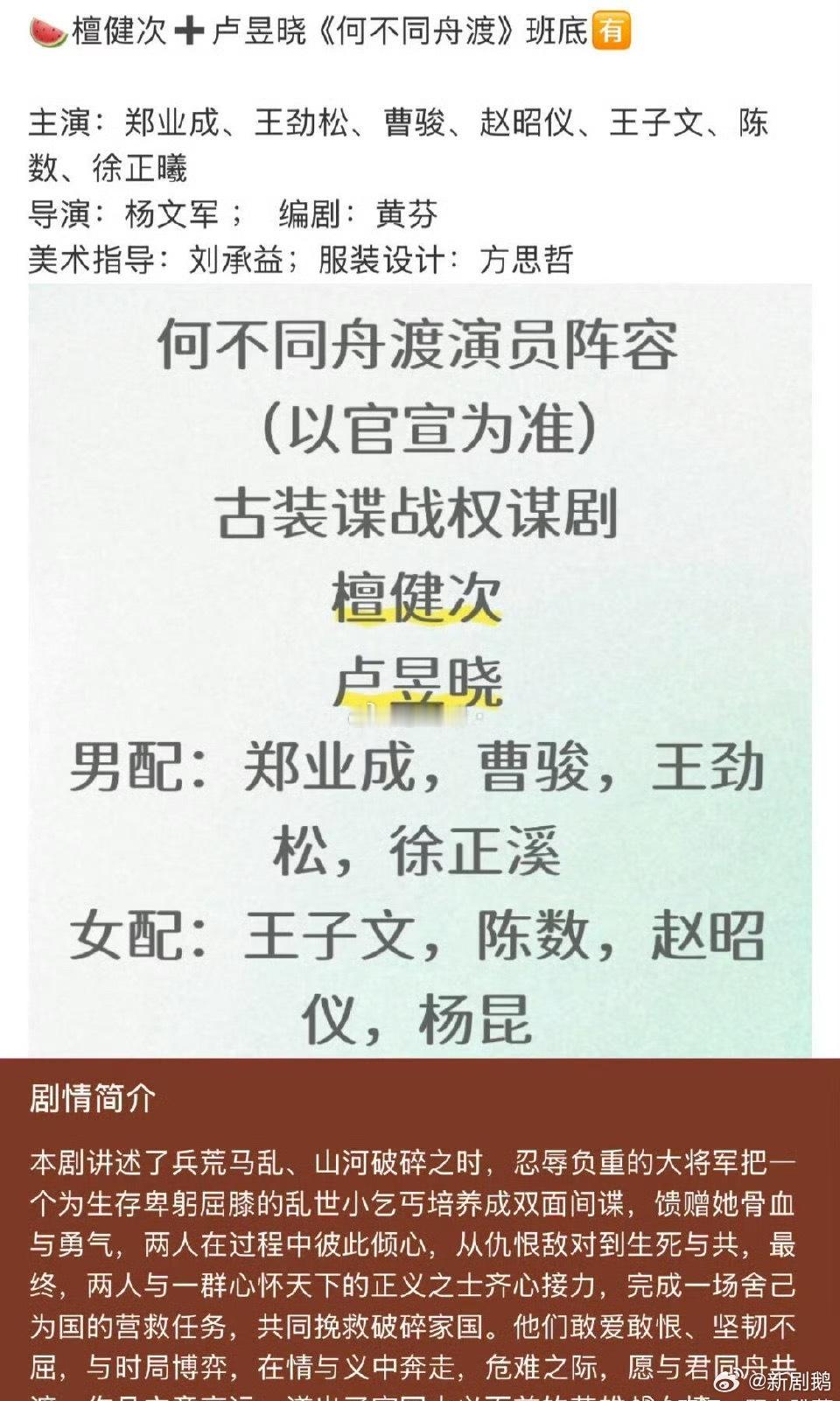 何不同舟渡又出了一部好剧啊,这个阵容简直了很强大,比玉茗茶骨还强大,期待一下