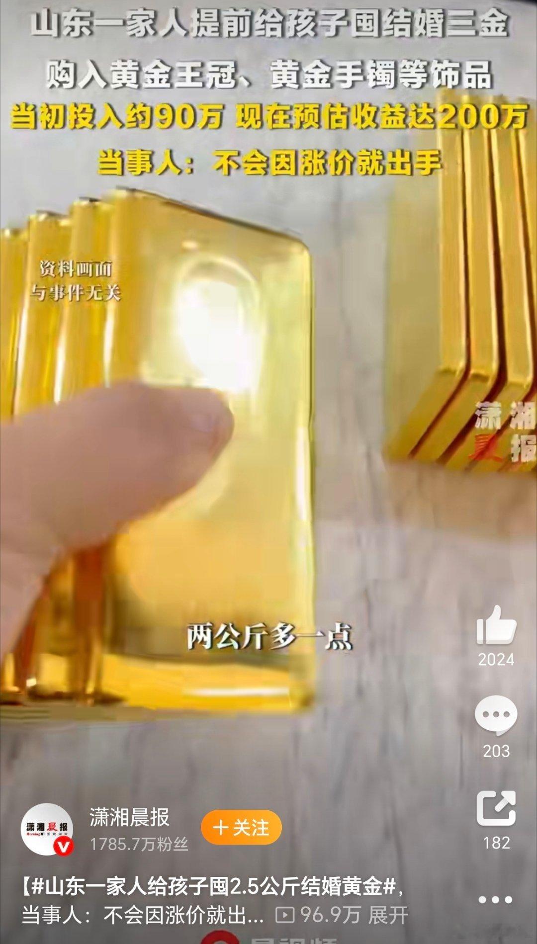 女子为孩子囤黄金投入90万收益200万又在骗我买黄金?我就不买!
