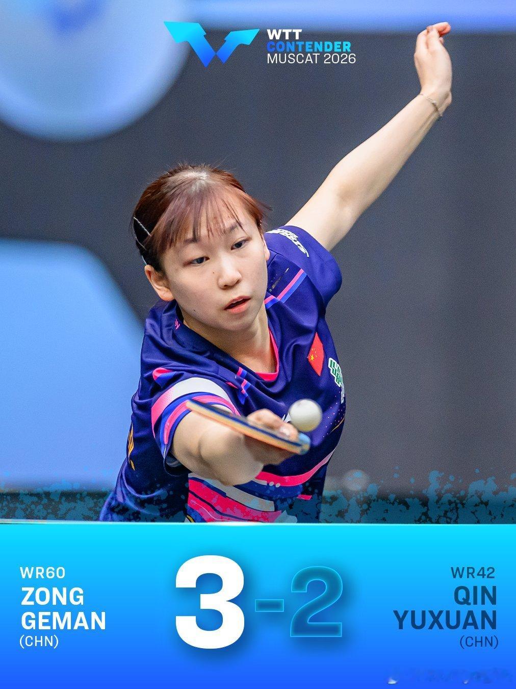 WTT常规挑战赛马斯喀特站2026 wtt:纵歌曼在0-2落后的情况下奋起直追,最终以3-2战胜覃予萱,首次晋级女单半决赛! 🔥