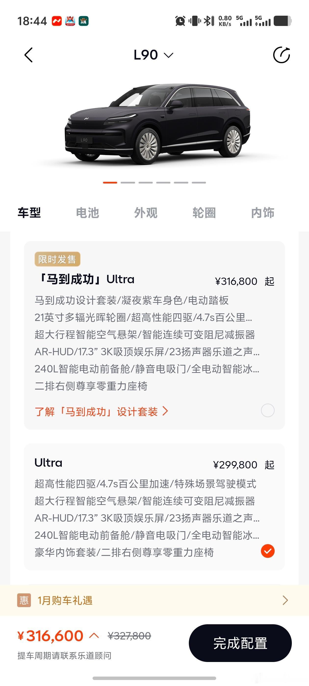 蔚来 ET9 那边出了百万辆纪念版,乐道这边的特别版也来了——马到成功版,马年特别版。这个版本增加了方向盘、头枕、门槛条的装饰,虽然不痛不痒,但是说出去感觉还是会不一样一点价格上特别版车型已经打包了一些配置,我按照相同选装选了一下,价格只差 200。但是特别版多了专门的 Logo 和专属交付礼,对于本来就准备选装这些的车主,这个版本还是很划算的,特别版情绪价值拉满。乐道汽车