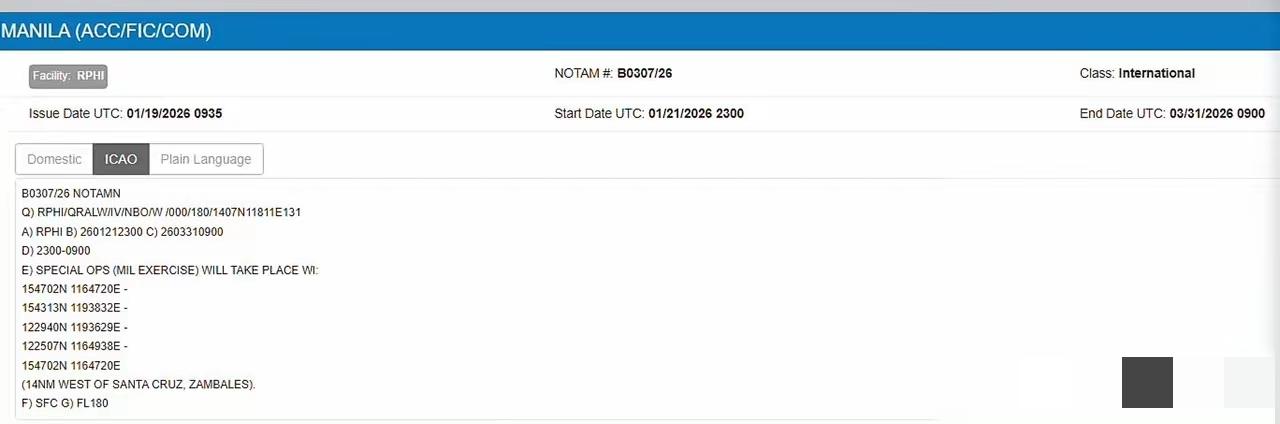 突发!菲律宾发布航行通告,宣称自2026年1月21日23:00起至3月31日09:00止,为期70天。其在南海划定大面积演习区域,范围涵盖中国黄岩岛(来源:SCSPI) 菲律宾这个举动,可不仅仅是普通的军事训练那么简单。时间点选在年初,一划就是一大片海域,意思再明白不过了。 咱们的渔民祖祖辈辈在那片海域生产作业,中国政府对黄岩岛的主权和管辖,有着充分的历史和法理依据。2012年,中国政府就已经对黄岩岛实现了常态化管控。 这种规模的演习,说是“例行”,恐怕没人相信。把演习区域刻意覆盖到争议岛礁附近,在国际上通常被视为一种试探,一种施压,甚至是制造紧张氛围的手段。南海的和平稳定,得来不易,是周边各国共同努力的结果。 这些年,中国和东盟国家一直在推动“南海行为准则”的磋商,就是为了大家能坐下来,定规矩,避免误判。 中国在南海岛礁的建设,主要是为了提供国际公共产品,比如灯塔、气象站,为各国船只航行安全服务。咱们追求的是共同开发,合作共赢,而不是搞军事化。 菲律宾方面这种做法,不由得让人联想到背后是否还有其他推手。南海的和平之海、合作之海,是地区国家的共同愿望。 任何单方面的、带有挑衅性质的行动,都像是在精心构筑的和平大厦墙上敲钉子。今天你敲一颗,明天他敲一颗,这大厦还能稳固吗? 中国作为主要沿岸国,一直是南海航道安全畅通的坚定维护者。真正威胁稳定的,恰恰是这种域外干涉与不必要的军事展示。 七十天的炮声与硝烟,吓不倒谁,只会让热爱和平的人们更加警醒。中国的领土主权和海洋权益,不是几场演习就能动摇的。 我们有足够的智慧和能力,捍卫自己的利益,也有坚定的意愿,与邻国一道维护南海的太平。 各位读者你们怎么看?欢迎在评论区讨论。