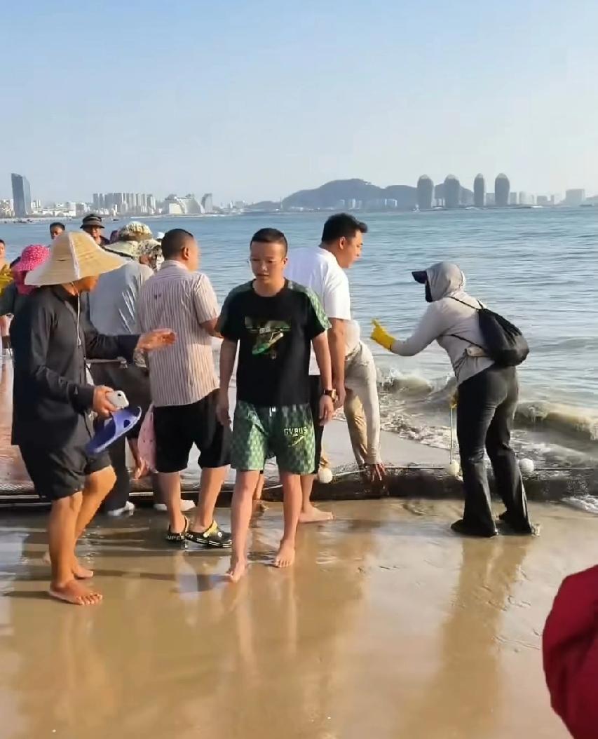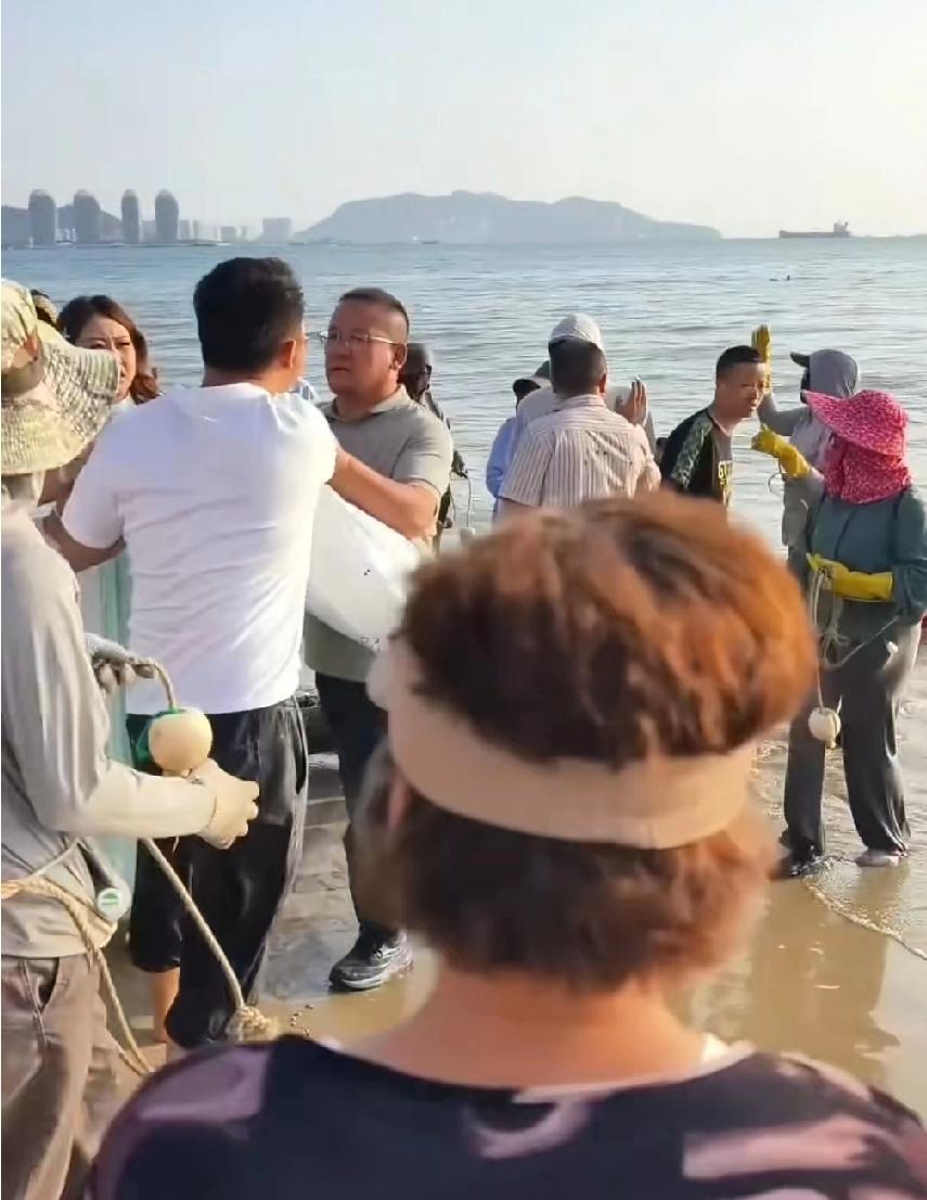海南三亚湾,渔民在收网时游客带着孩子靠的太近了,渔民一直说走开一点、不安全。这下,这两位孩子家长(白衣短袖和黑衣短袖男子)不干了,就跟渔民们撕扯了起来…… 网友吐槽:不得不佩服这两个男子的胆量,在别人的地盘上居然敢如此嚣张,不清楚状况的还以为他们是当地的地头蛇呢。还是和谐社会救了他们啊! 评论区诸君,你们怎么看?