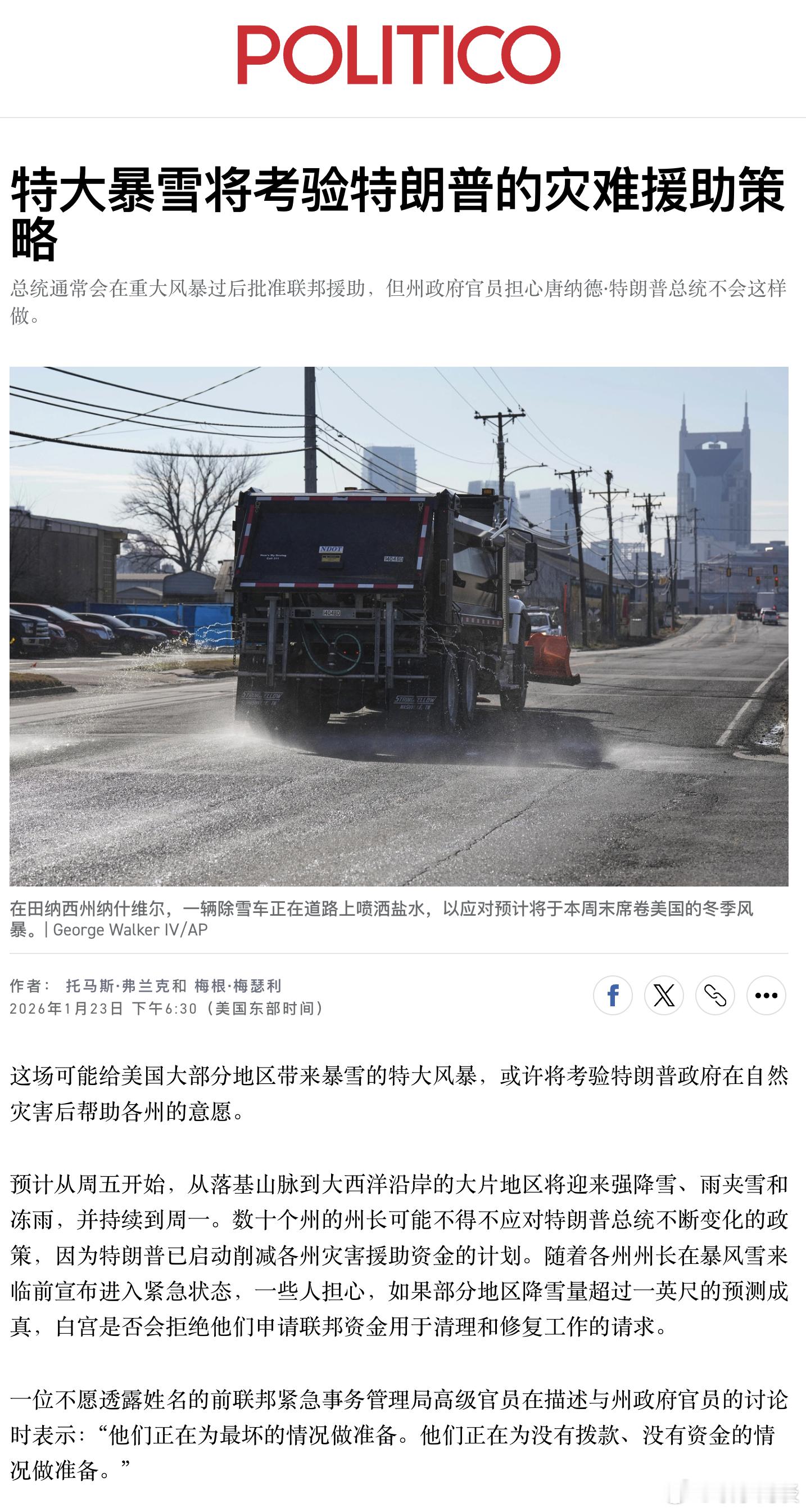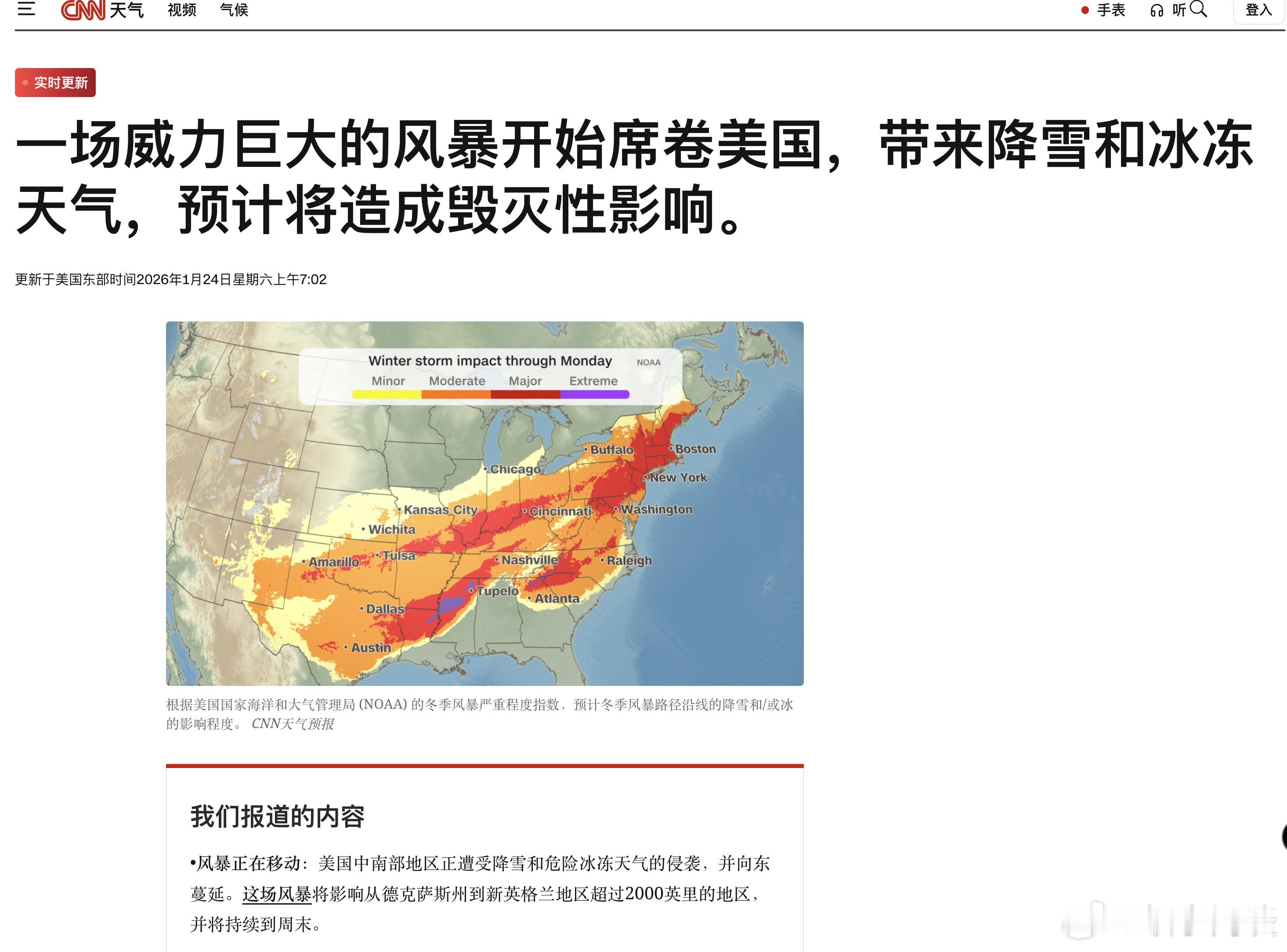 美国迎来强冬季风暴美国媒体挺乖巧的,危机之前,先打预防针。面对灾难,顺其自然。
