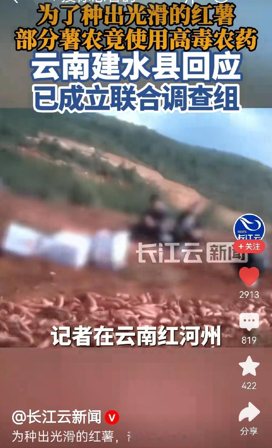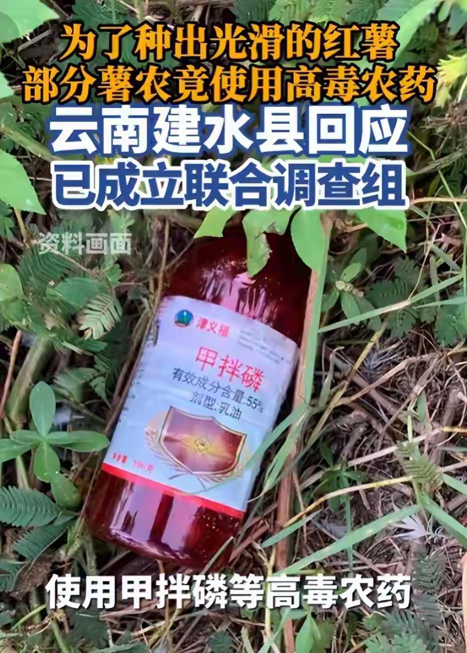 云南毒红薯事件,我有4个疑问 冬天常吃红薯,而且买到的红薯都看不到虫咬痕迹,看到云南曝光的毒红薯事件(使用国家明令禁止的剧毒农药甲拌磷、克百威,确保红薯光滑,卖相好),首先想到的是自己吃的红薯,光滑,无虫咬痕迹,是否也是农药根施的结果,突然也不敢吃了。 常吃红薯的我,有4个疑问。 1、使用剧毒根施,确保红薯光滑,是否整个红薯行业的通用惯例。 2、云南的毒红薯,都卖到哪里了? 3、我们吃的红薯也看不到虫子咬的痕迹,他们是如何驱虫的? 4、红薯是主要冬粮之一,吃什么样的红薯才是安全的? 几十年前,家里种红薯,确实很多红薯有虫子咬痕,烀红薯的时候,把虫子咬痕削掉就可以了,根本不影响吃,现在买的红薯,竟然看不到虫子咬痕,好想知道,光滑背后的真相,您呢?