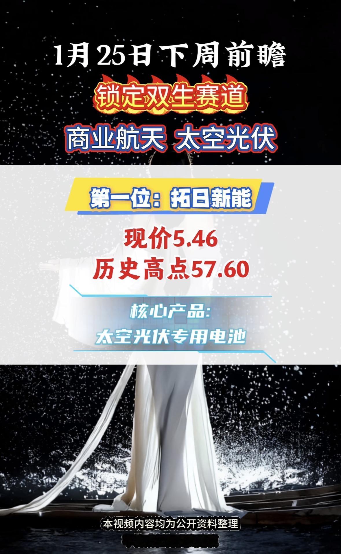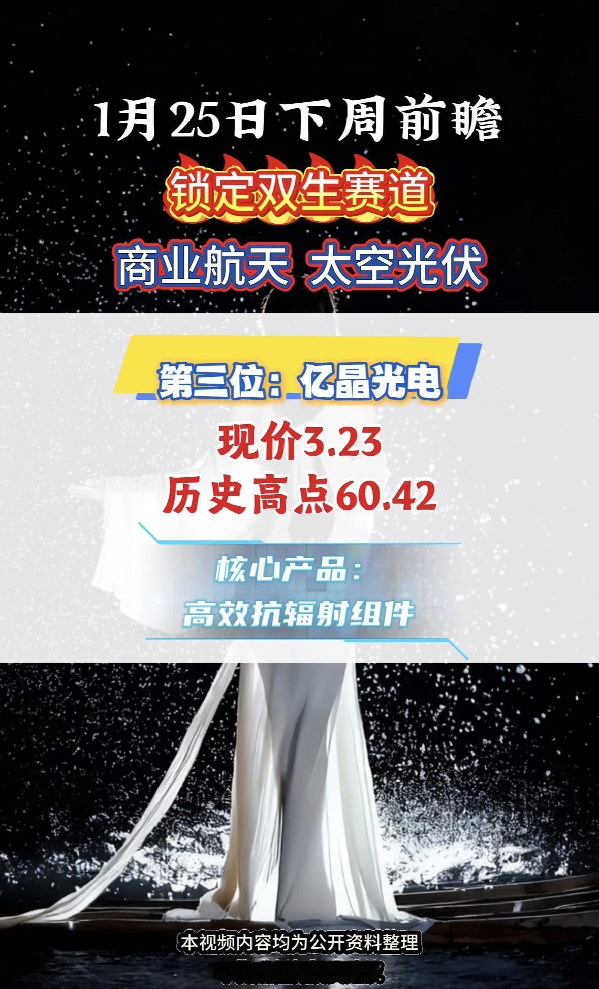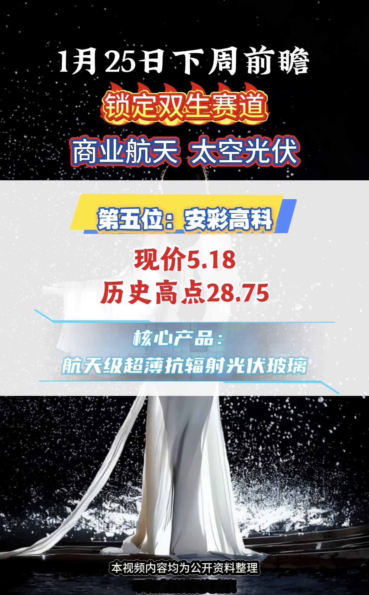 1月25日锁定双生赛道,商业航天与太空光伏齐飞! 商业航天与光伏赛道受关注,核心产品聚焦航天级光伏玻璃,历史表现亮眼但需理性看待市场波动。公开资料仅供参考。 下周聚焦双生赛道,商业航天与太空光伏受瞩目。某企业航天级光伏玻璃引关注,历史表现亮眼。公开资料整理,非投资建议。