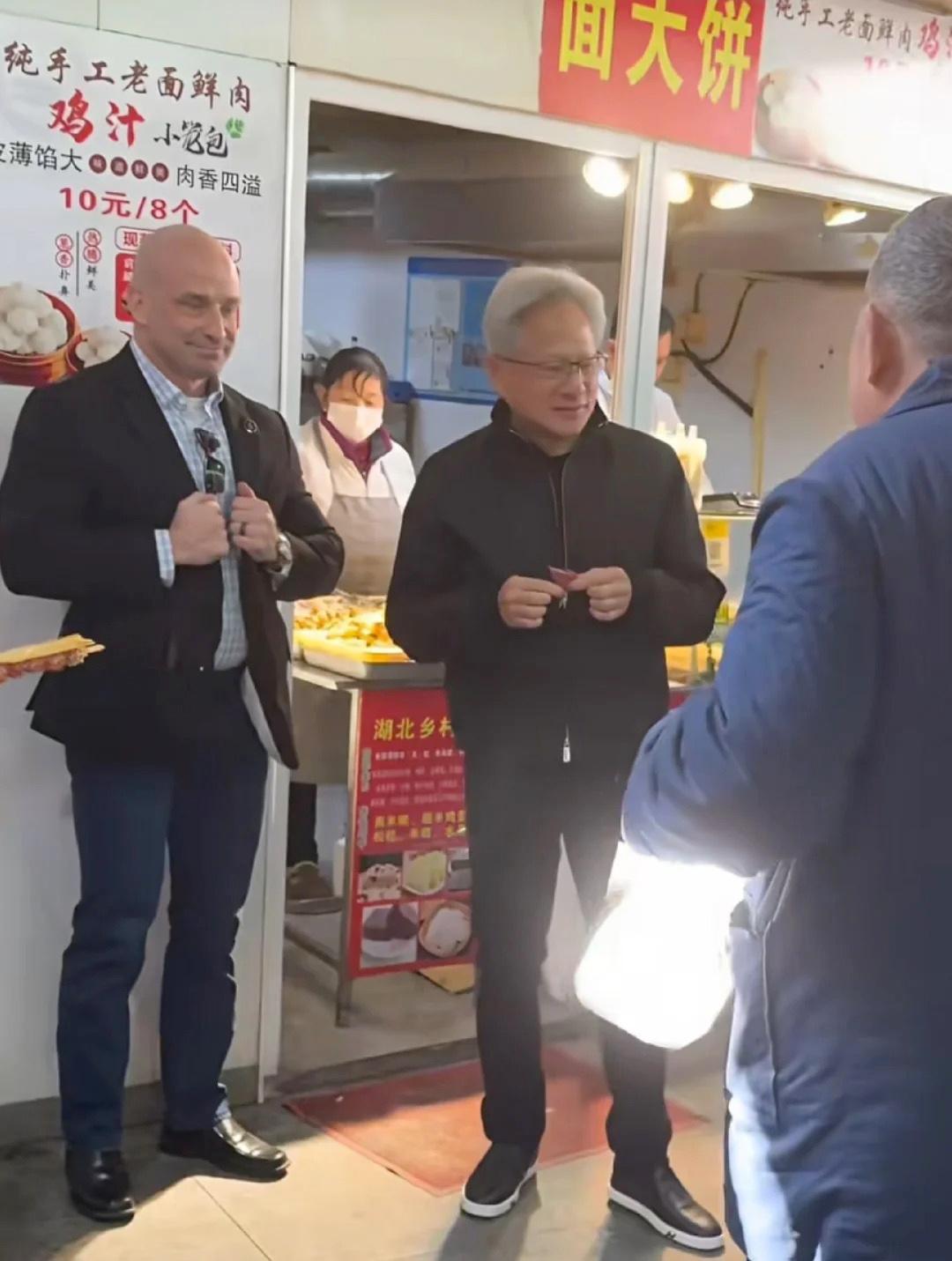 老黄前脚刚到上海,后脚就去逛了陆家嘴街道乳山路锦德菜市场,难道他也想买点年货带回家吗?不得不说他站着拍照的这位置绝了,站在一个包点摊位前,后面墙上写着“面大饼”三个字。不仔细看还以为是画大饼,网友开玩笑说老黄又来画大饼了。 当然这只是善意的调侃,英伟达在北京、上海、深圳都有分公司,员工有好几千人。他的公司给我们创造了税收,带来了新的科技理念,促进了科技进步,也让几千名高学历人才拥有一份体面的工作。 老黄每年都会不远万里来到分公司参加年会,与员工一起载歌载舞迎新年,大家都对老板是发自内心的热爱与尊敬。想想看如果没有他,这些人上哪去找这么好的工作?如何让全家人衣食无忧过上小康生活? 老黄富可敌国,对待普通人却很亲切随和。他在上海随意逛菜市场,一路品尝小吃水果,还把有自己签名的红包送给水果摊贩。这样接地气的行动,以前从未听过有哪个大富豪这样做过,难怪老黄走到哪里都很受民众欢迎。 有人说,老黄具有顶级的商业智慧,用逛菜市场、大排档吃夜宵这种接地气的方式,拉近与普通人的距离,在国内市场赢得口碑。他在引领全球科技进步的同时,也展现了自己与民同乐的人情味,是一种赤子情怀。