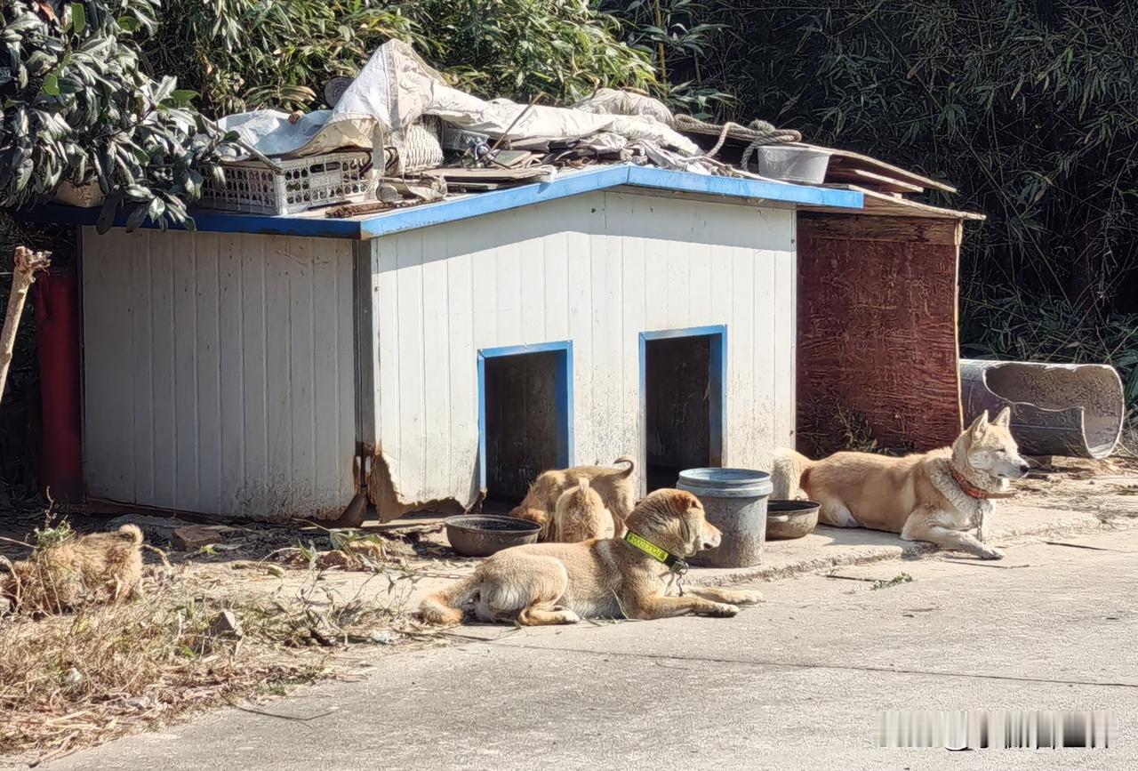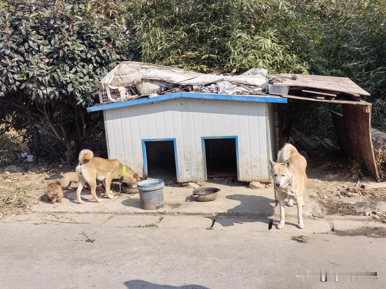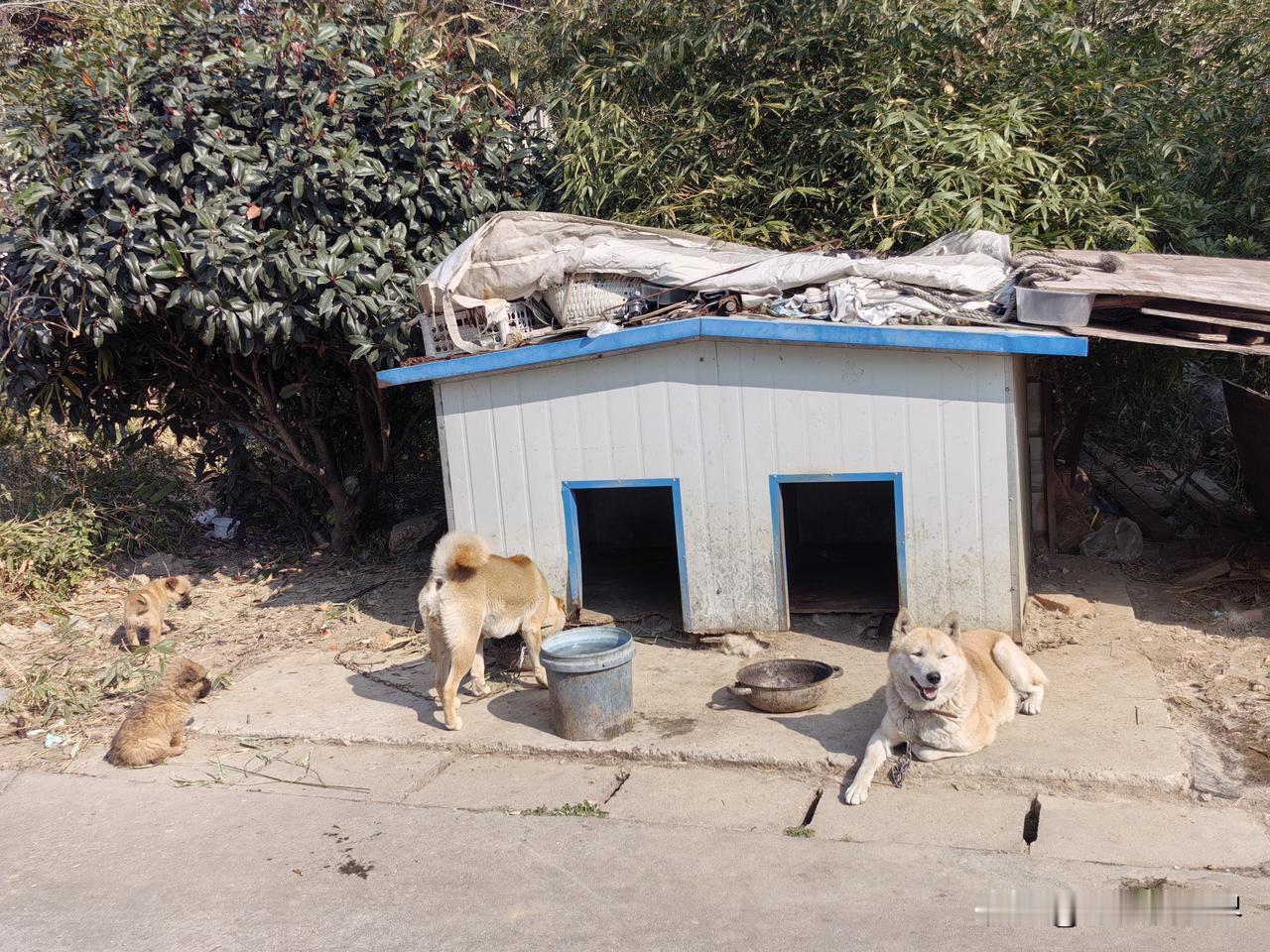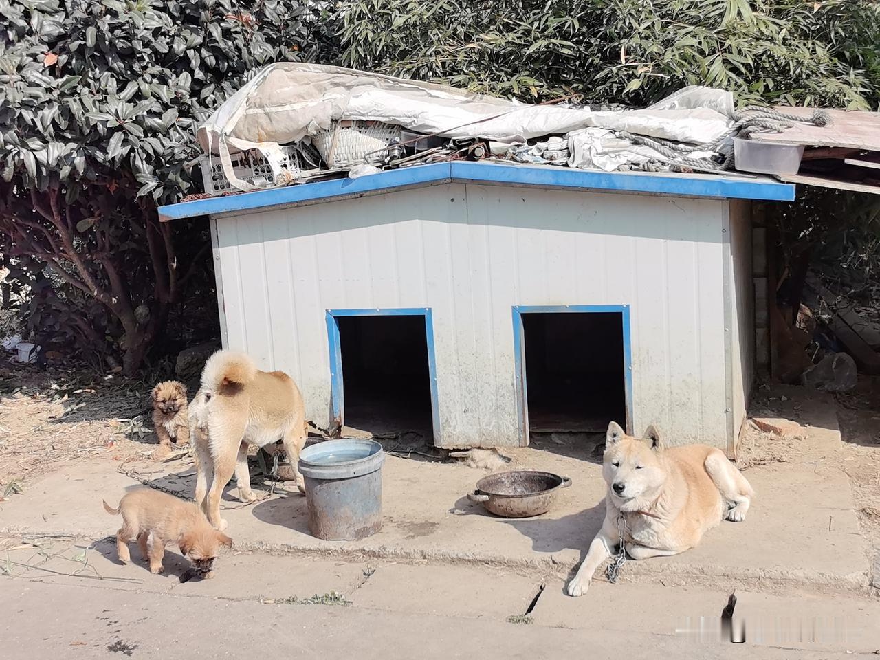 看到一头像狼的狗狗,赶紧跟上去,原来是我们村上一户人家养的。 到了那里才知道,他家养了五条狗狗呢!不问不知道,一问才了解,原来这五条狗狗,都是流浪狗。 好在他们家房子后面就是村上的健身广场,所以他们就在搭了广场边上狗窝。 几条狗狗生活在一起,打闹玩耍,你追我跑的,亲如一家人。 最搞笑的是另外一条大狗,据说才来不久,来这里后就是不走了,看它顺势的毛,其实应该是别人家养的,可是它居然就是不想回去了。 他们家赶不走,只好让它暂时住下来,原来的主人家估计要急死了,可是它家到底在哪里呢! 而旁边几条小狗,都是别人家丢在垃圾桶旁边,他们看着可怜,捡回来的。 不过这么多条狗狗,每天的吃食也是个问题,好在他们不挑食,给啥吃啥,荤菜、素菜、饭、骨头汤甚至山芋都爱吃。 有这么善良的主人家,还有几个同伴,一起撒泼打滚,打打闹闹,怎么着都是岁月静好现世快乐呀!友友,你们说呢?