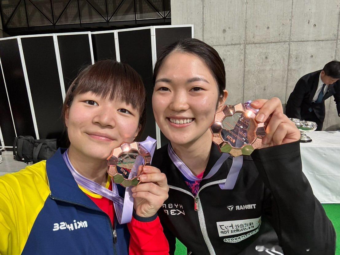 木原美悠:非常感谢大家的应援支持!🙇♀️马上还有双打比赛,我会继续加油的!🔥也非常感谢团队的教练、工作人员,以及队友们,从头到尾给予了我温暖的支持和鼓励,真的非常感谢!这给了我很大的力量🤩和同级生横井选手一起合影📸作为同龄人,以后也一起朝着更高的目标努力吧🔥💪😉还有还有——最后是四个人一起的合照🤳📸很棒的一张照片🥳(机翻)