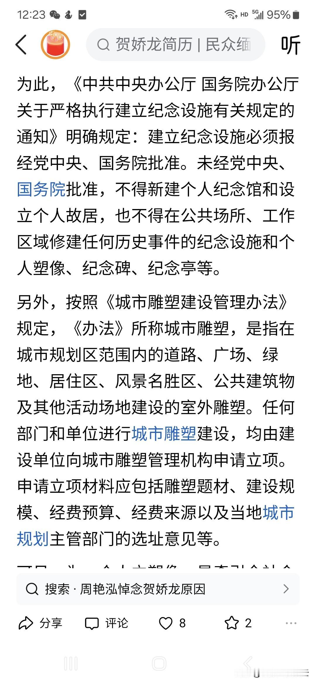 针对网友呼吁为贺娇龙塑像引发的关注,官方媒体称审批流程需要六级汇报52项评审,最快也要480天。可是,几年前荆州建造那座耗资1.77亿的关公雕塑,走这些流程了吗?建成没几年又花1.5亿拆掉,走流程了吗?