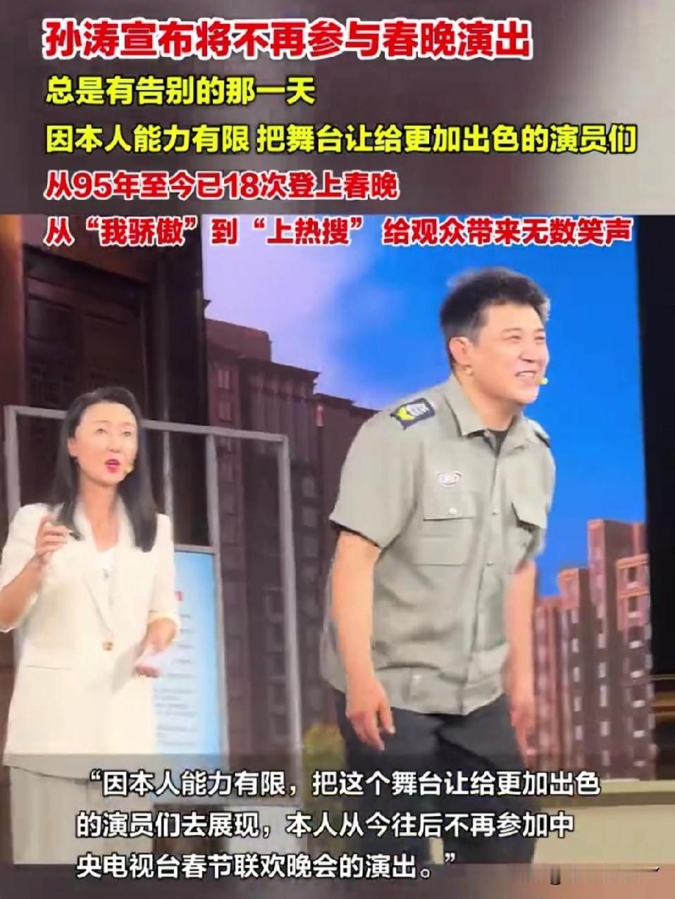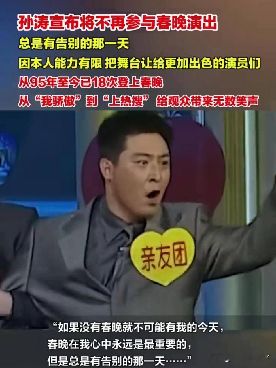 他生于1966年,1995年初登春晚舞台,二十余载相伴,《你摊上事儿了》的经典桥段、“我骄傲”的口头禅,早已深深烙印在几代人的春晚记忆。 这份主动谢慕,是岁月流转的必然,更是体面的成全。而近期的网暴争议,更让这份告别添了几分心疼。 舞台会有新旧更替,经典却永不褪色。愿老艺术家卸下光环,自在生活。也希望我们多些包容,让热爱舞台的人能够温柔退场。