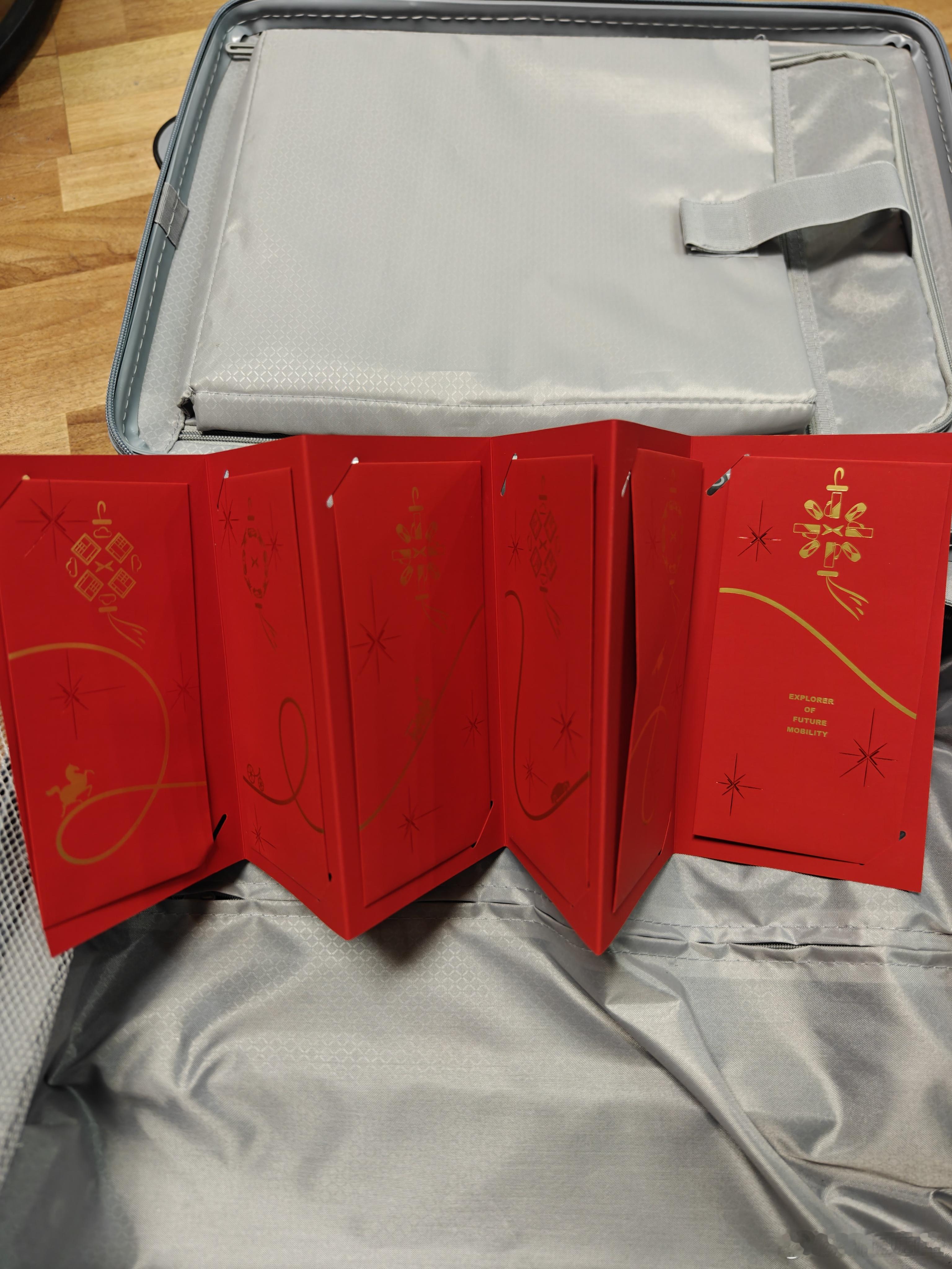 199的鹏厂马年礼盒开箱!挑重点说说1、行李箱是轻量化的,但是表面不是耐磨材质,有密码锁,拉杆可以分两级高度2、有杯架和usb充电口,充电测试下来应该是usb3.0,也就是4.5w的充电速度3、里面有一个便携包带挂绳,一个pu的小红马,6个大红包(里面没钱💰)4、里面的分层设置还不错,并且还有一个带海绵防震的电脑包夹层,这个好评小鹏汽车小鹏汽车