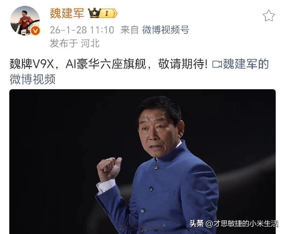 魏建军藏不住了! 今天长城汽车魏建军发视频官宣魏牌全新旗舰魏牌V9X!魏总信心满满地说车已经在这儿了,这一次让我们保定人心目当中的大旗杆立起来了。 魏牌全新旗舰V9X基于归元平台旗舰级技术系列,基于归元平台,首个高端技术序列归元S打造的AI豪华六座旗舰!归元S集成了长城汽车最前沿的技术!归元也有技术序列,归元S! 可以看出魏牌是魏总最喜爱的品牌,说是心头肉也不为过,长城汽车的一车多动力平台归元平台的第一辆车给了魏牌。而且是归元S首发AI豪华六座旗舰,回归V系列命名,采用悬浮式保定旗杆车标、贯穿式灯带! 魏牌V9X作为长城十年技术集大成之作,承载长城最顶尖技术,原生AI赋能,六座奢享布局,智能、豪华、性能融为一体。V9X不止是一台SUV,更是魏牌向上的全新力作,标志着魏牌冲击豪华大六座SUV市场的关键一步,这次魏总能像高山一样成功吗?