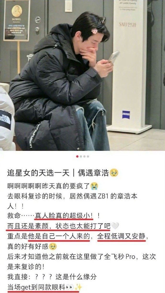 章昊素颜看眼科 网友看眼科偶遇章昊去医院复诊,透露素颜的章昊脸超级小!