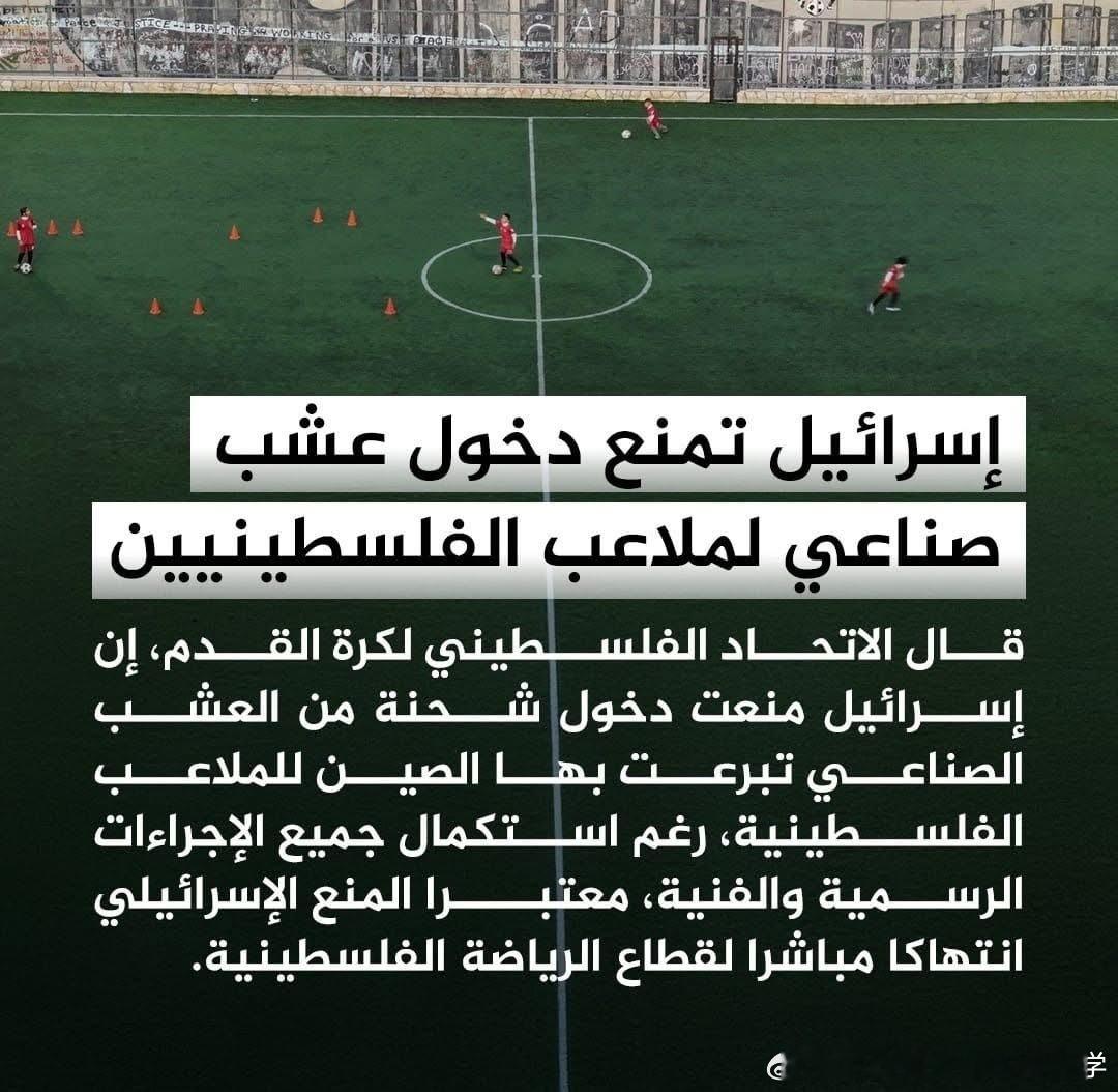 🟥以色列禁止人造草坪进入巴勒斯坦球场!!巴勒斯坦足球协会表示,以色列阻止了一批由中国捐赠、用于巴勒斯坦球场的人造草坪入境,尽管所有官方和技术手续均已完成,并认为以色列的这一行为是对巴勒斯坦体育领域的直接侵犯。🇵🇸🕊️✊🏼❤️🩹美伊对峙热点优质创作计划美向以色列通报对伊朗军事行动准备