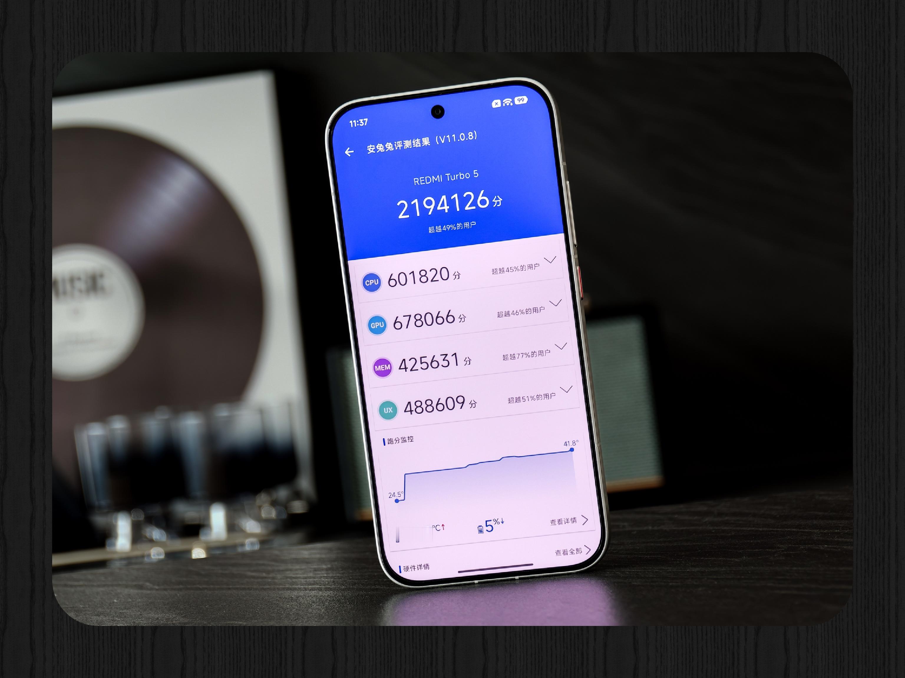 6.59"1.5K中屏+金属中框+玻璃机身,再加上极简竖排双摄,CMF质感进步很大;天玑8500 Ultra+LPDDR5X Ultra+UFS 4.1,实测王者吃鸡都能满帧运行;7560mAh+100W,指纹是短焦光学方案,有满级防水,中屏质感机喜欢吗Turbo5首发测评