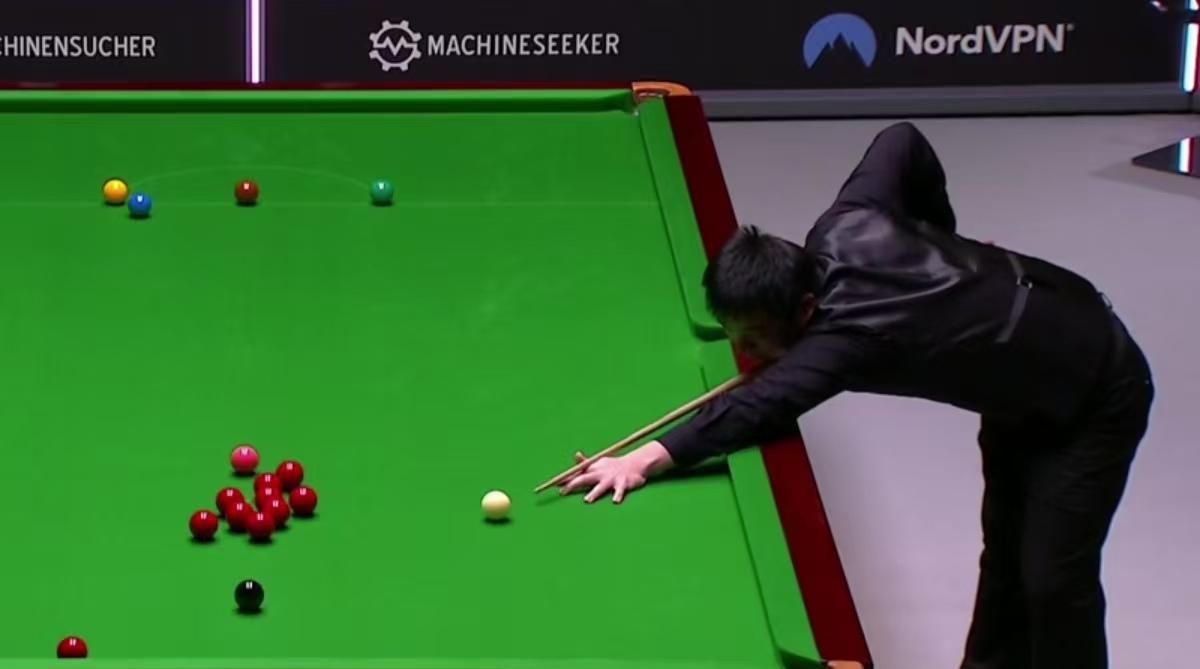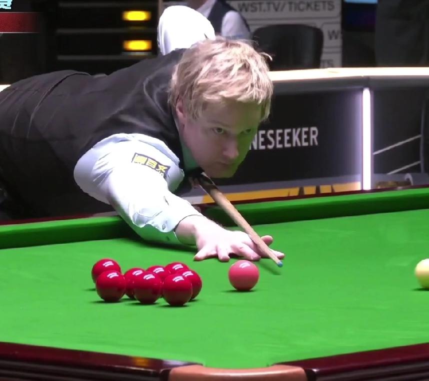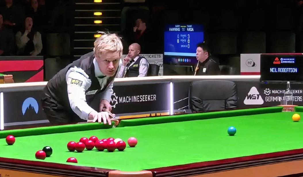 庞俊旭2-5不敌罗伯逊!无缘晋级德国大师赛的16强! 在刚刚结束的斯诺克德国大师赛32晋级16强的比赛中,中国小将庞俊旭挑战八零五虎之一的尼尔罗伯逊,庞俊旭状态低迷,罗伯逊状态爆棚,轰出3杆破百5-2完胜庞俊旭,庞俊旭无缘晋级德国大师赛的16强。比赛过程如下: 第一局,罗伯逊母球摔袋被罚4分,庞俊旭上手取得31:0的领先,防守中罗伯逊上手轰出单杆108分破百。108:31先拔头筹取得开门红。 第二局,庞俊旭凭借单杆96分,96:2扳平局分。 第三局,庞俊旭凭借单杆70分,70:25再下一局,反超局分2-1领先。 第四局,罗伯逊轰出单杆100分破百,扳平局分。双方战成2-2进入局间休息。 第五局,庞俊旭率先上手得到16分,防守中罗伯逊上手打出单杆84分,84:16拿下此局,局分3-2领先 第七局,罗伯逊第一次上手得到24分,第二次上手轰出单杆106分破百,130:0拿下此局,局分4-2领先,率先拿到赛点。 第八局,庞俊旭上手取得34:0的领先,母球摔袋被罚4分。罗伯逊上手反超比分51:34领先,此后双方缠斗,罗伯逊做出高质量的斯诺克,庞俊旭解球连续被罚分,最终罗伯逊70:35收割比赛。最终尼尔罗伯逊5-2战胜庞俊旭,晋级德国大师赛的16强。 斯诺克决赛 斯诺克爆冷日 斯诺克16强