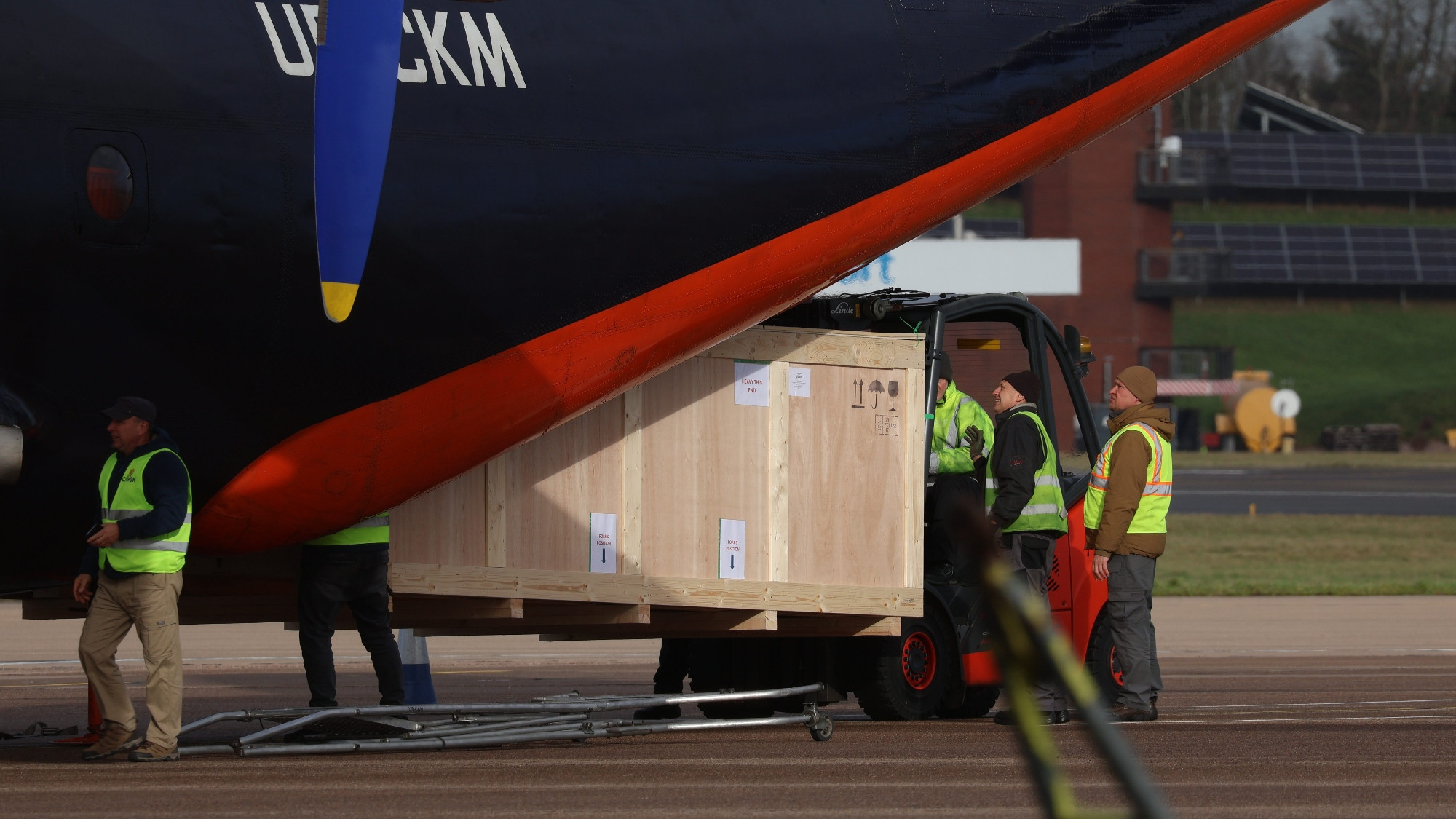 f1 阿斯顿·马丁的赛车目前正在运往巴塞罗那的途中,运输工具是一架已有54年机龄