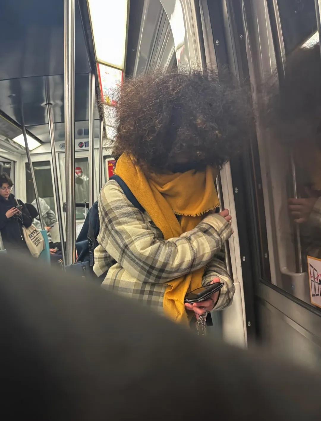 🇫🇷网友地铁偶遇一位爆炸头小哥,完全看不到脸,他进地铁的时候撩了一下头发看到一点五官,真的很好奇他是怎么看路的?