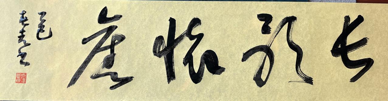 应朋友的请求写了一张横幅,用草书写成的,大家看看写的是什么,顺便帮着提点意见。