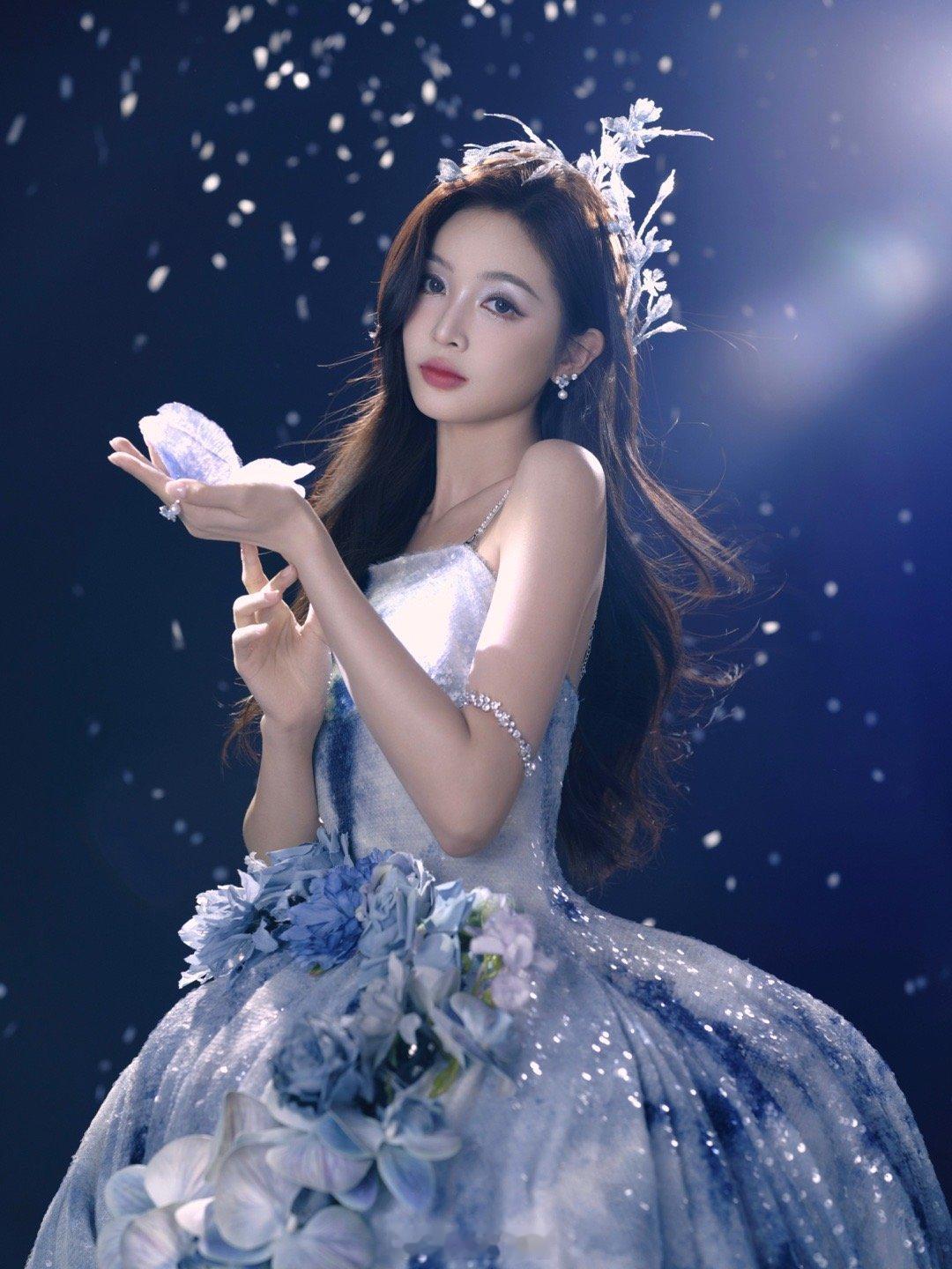 陈瑶这组春日写真直接把“清冷氛围感”焊在了身上✨一身冰蓝穿搭,像从童话里走出来