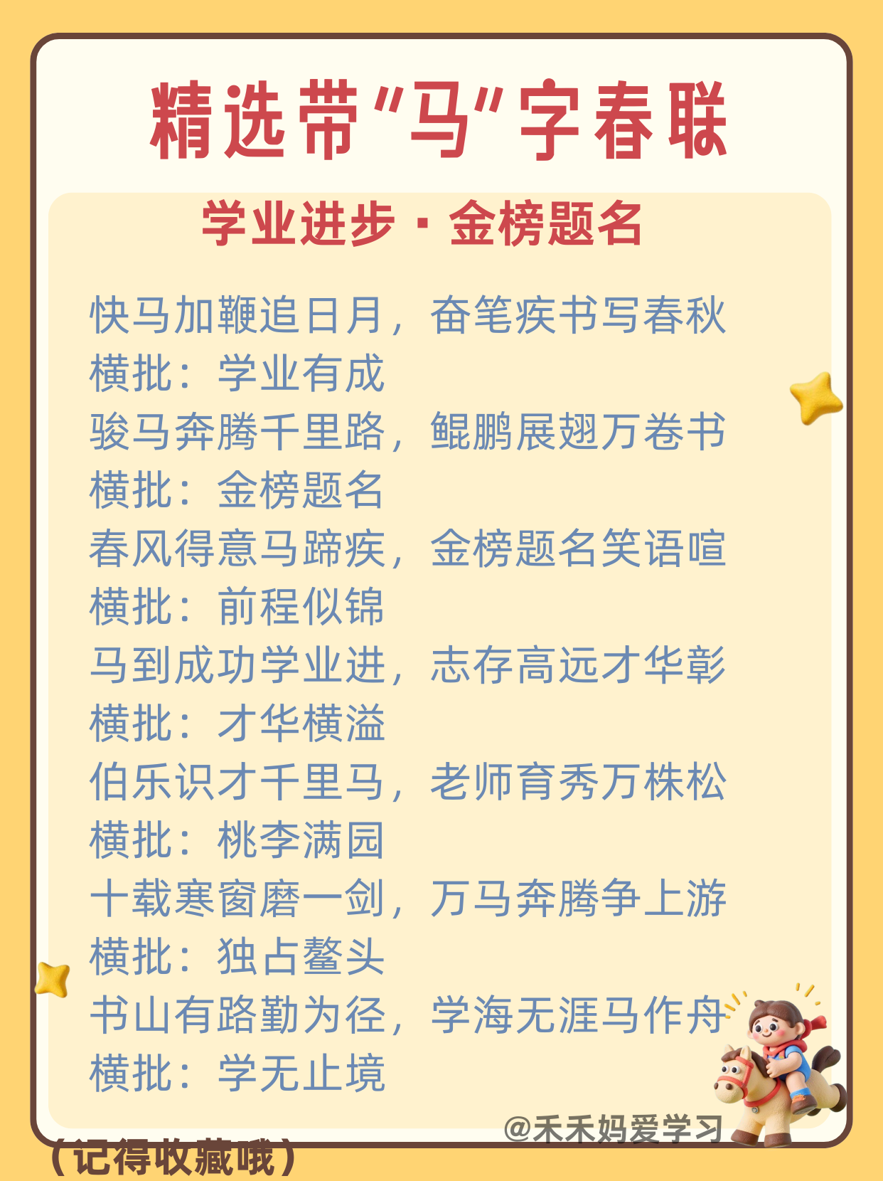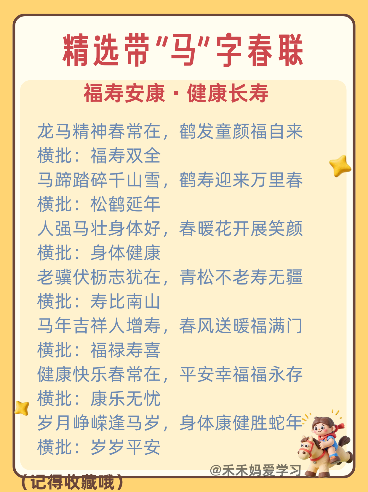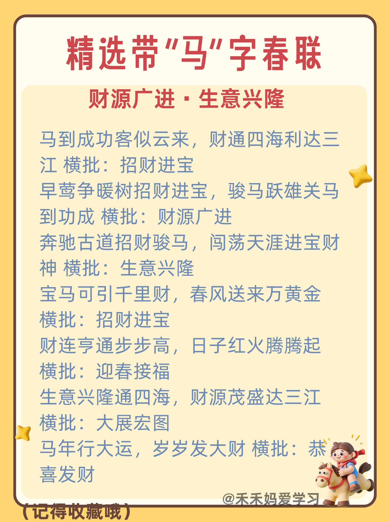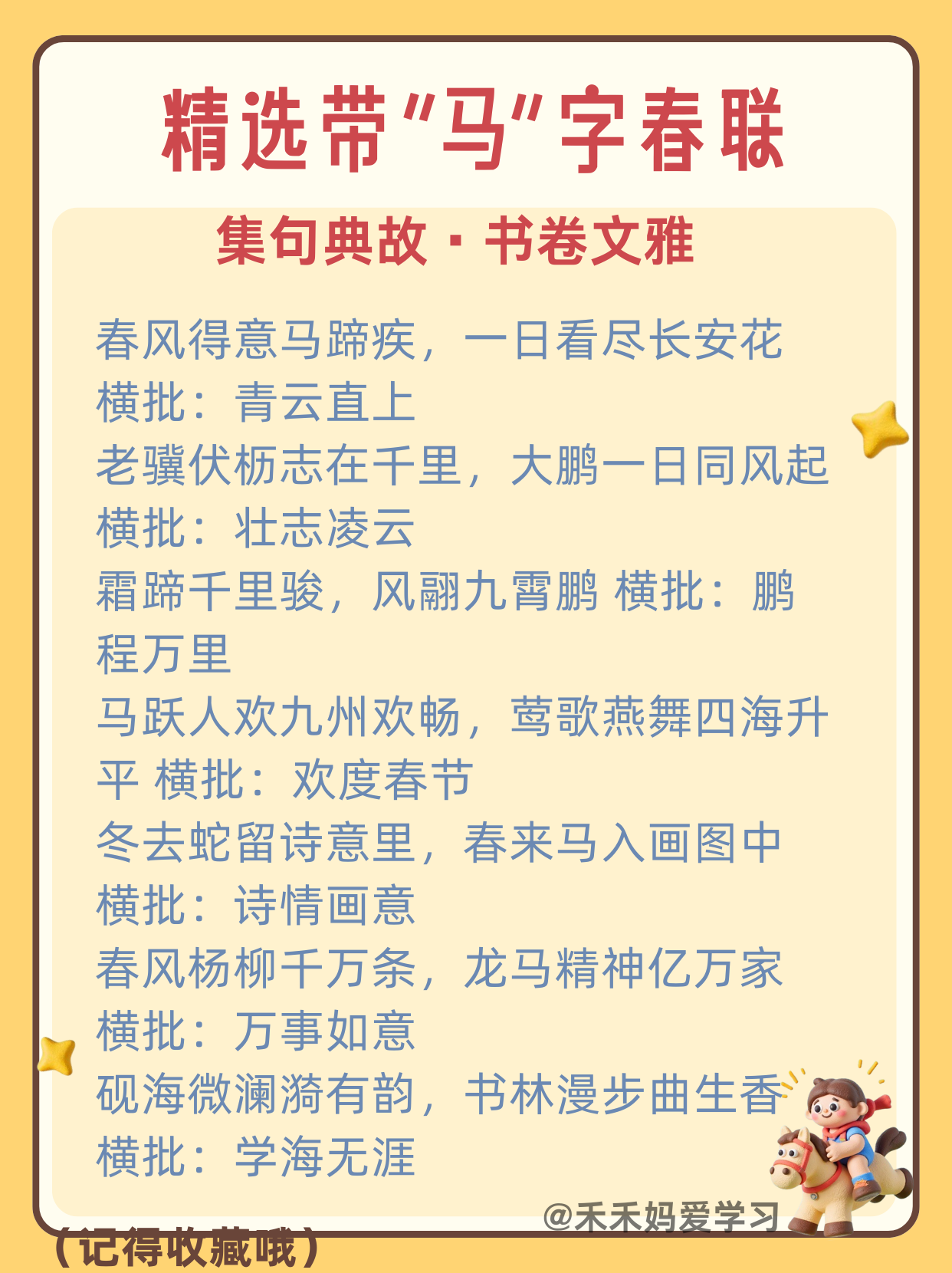 给大家分享一些含马字的好春联,涵盖事业腾飞、家宅平安、福寿安康、国泰民安等多重寓意,愿诸君按需择取,贴出新春气象。