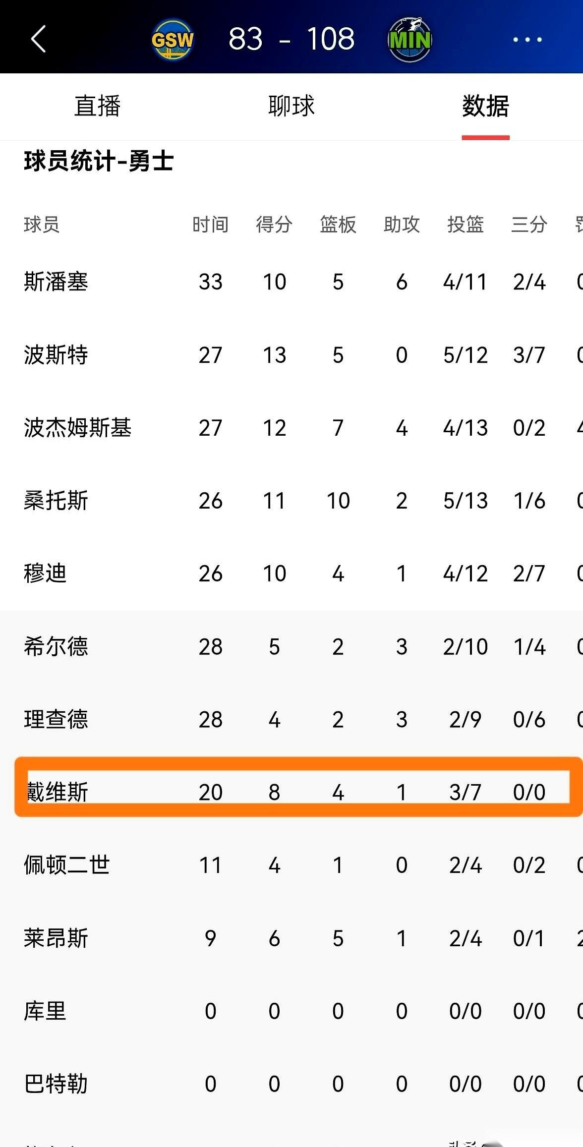 看见吗?库巴不打,上场时间26分钟以上的最高才13分,在其他球队都是替补,一半是选剩的,勇士老板管理层不作为!巴能打价高还换走一个能打的。[跪了]库里走吧!