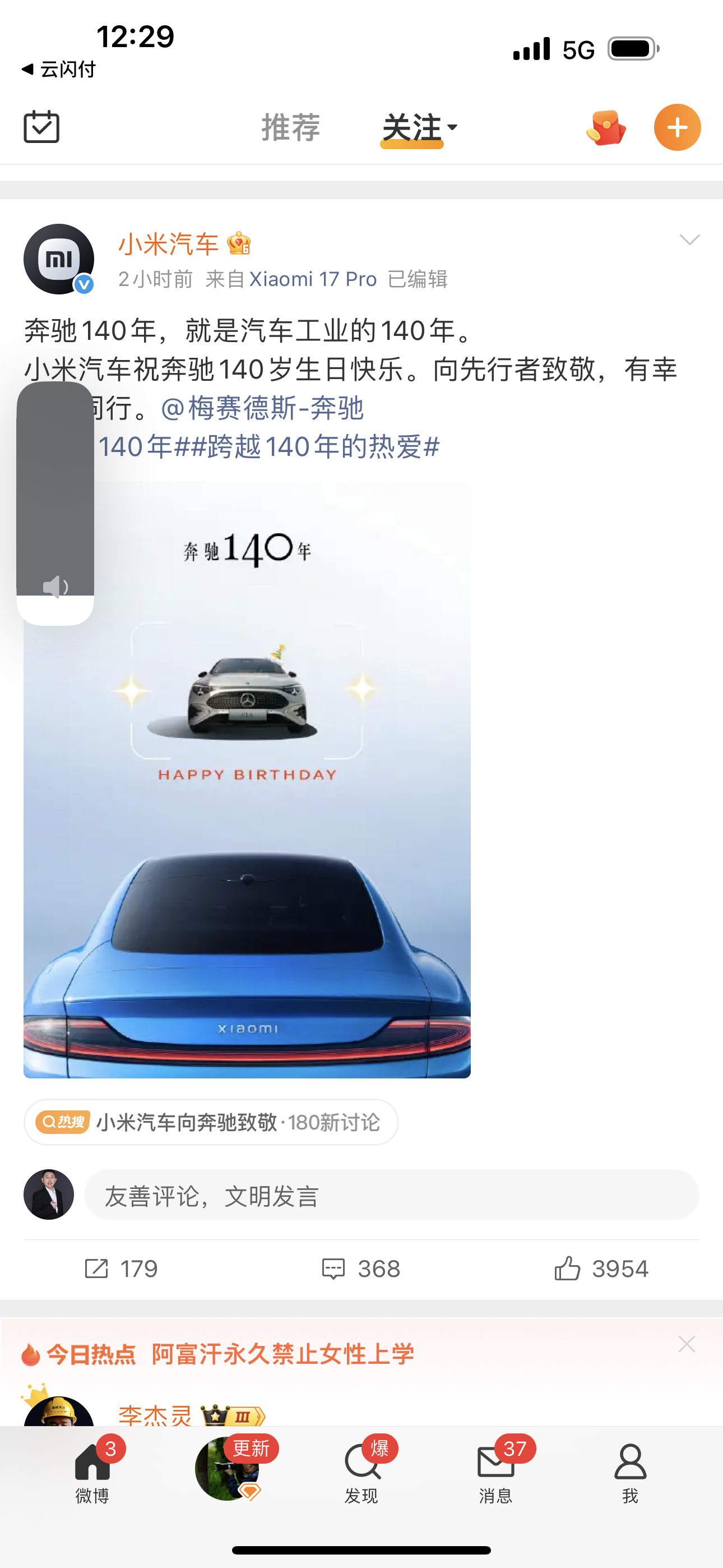 奔驰140年,就是汽车工业的140年。小米汽车祝奔驰140岁生日快乐。向先行者致