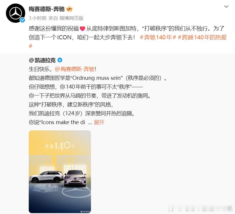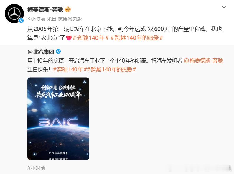 是汽车工业的开创者,每一个车企都明白奔驰的意义,大家是竞争对手,更是并肩同行的伙伴。奔驰140年跨越140年的热爱