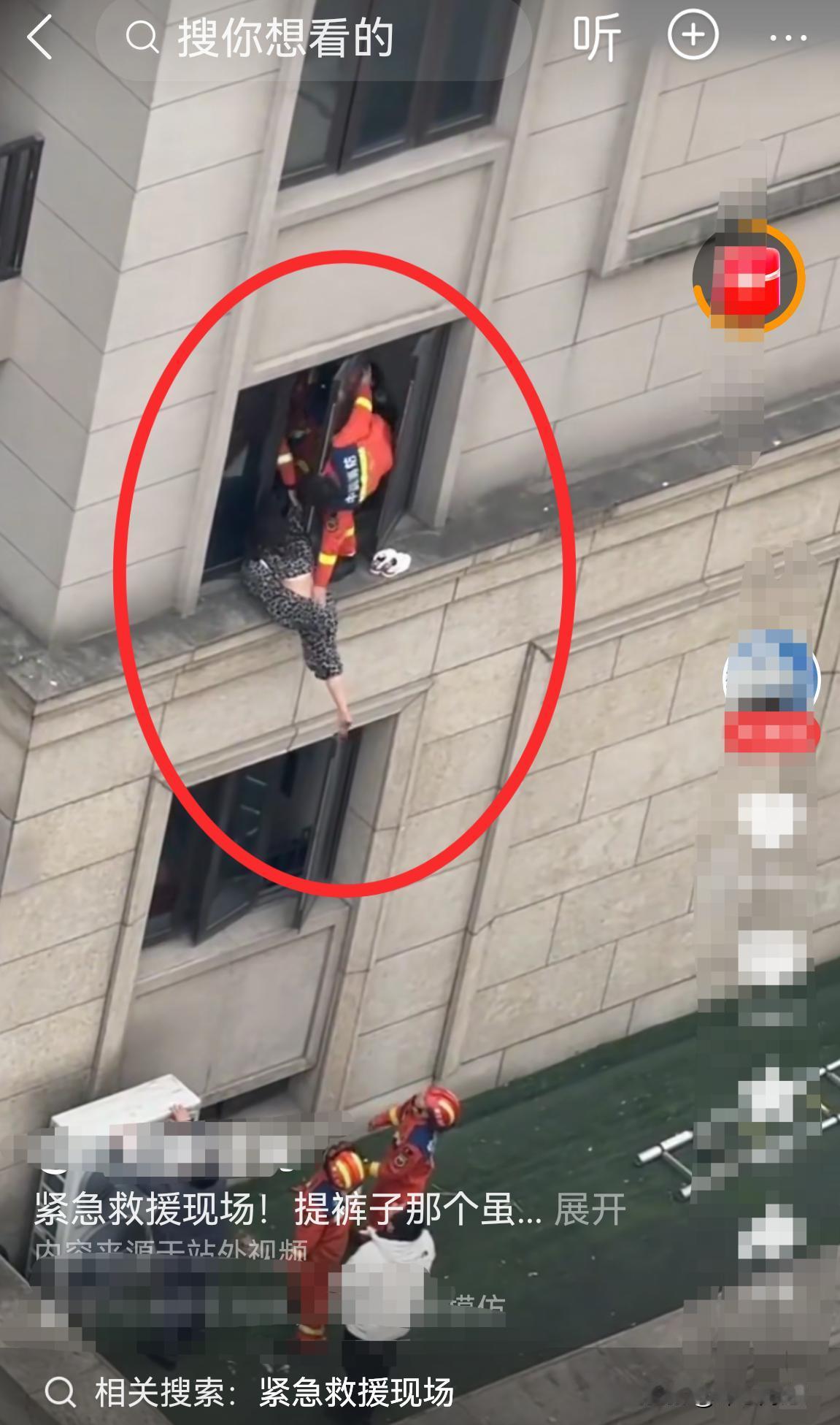 一挂一提:一名女子挂在窗外,消防员及时爬窗提裤救人!完美动作,一气呵成!