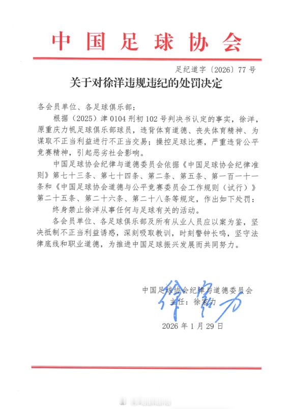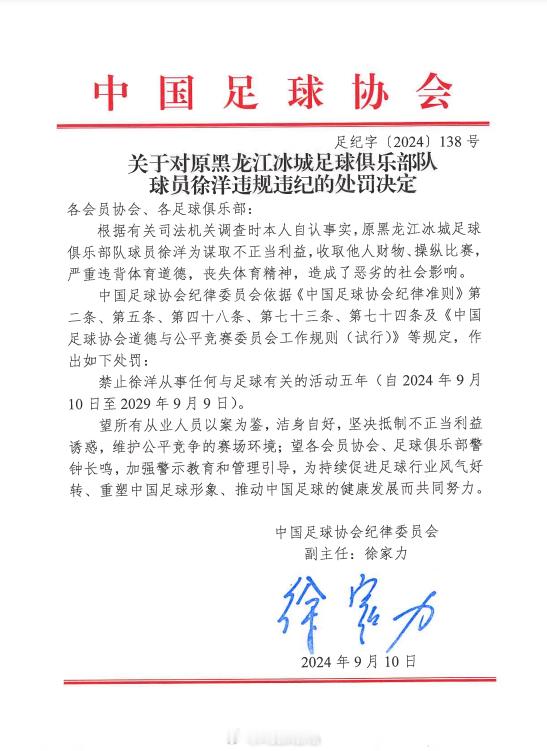 球员徐洋是唯一一个上了第一批罚单,又上了第二批罚单的球员……第一批时是因2021-2022在黑龙江冰城时效力期间的问题被禁赛五年。如今第二批因2016-2018年间在重庆力帆效力期间的问题被终身禁赛……