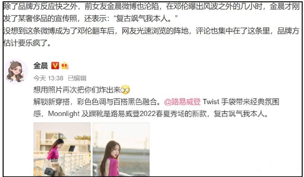 李圆梦☕ 【曝金晨肇事逃逸】金晨代言评论区沦陷!警方介入调查品牌开始切割,已删除直播预告...交警回应金晨被曝肇事逃逸!“金晨从代言高光到肇事逃逸风波,48小时内经历人生过山车。狗仔曝光现场照片与认定书细节吻合,品牌方陷入两难境地,网友已开始集体抵制。这出戏码与其前男友邓某的塌房轨迹惊人相似,娱乐圈的轮回总是来得猝不及防!”前一天官宣新代言,后一天就被曝肇事逃逸找助理顶包,35岁金晨最近的日子堪比过山车,起起落落太刺激,最新进展为警方成立调查组... 狗仔喊话金晨!圆梦日记 📖