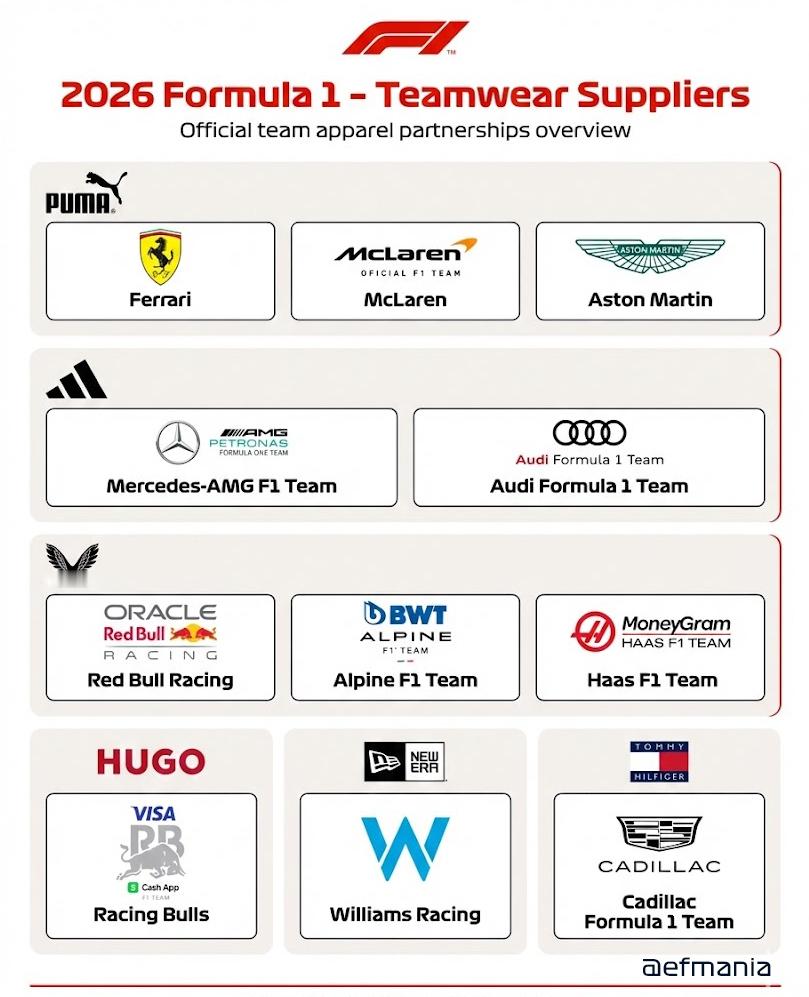 f12026年F1车队的服装供应商~👇