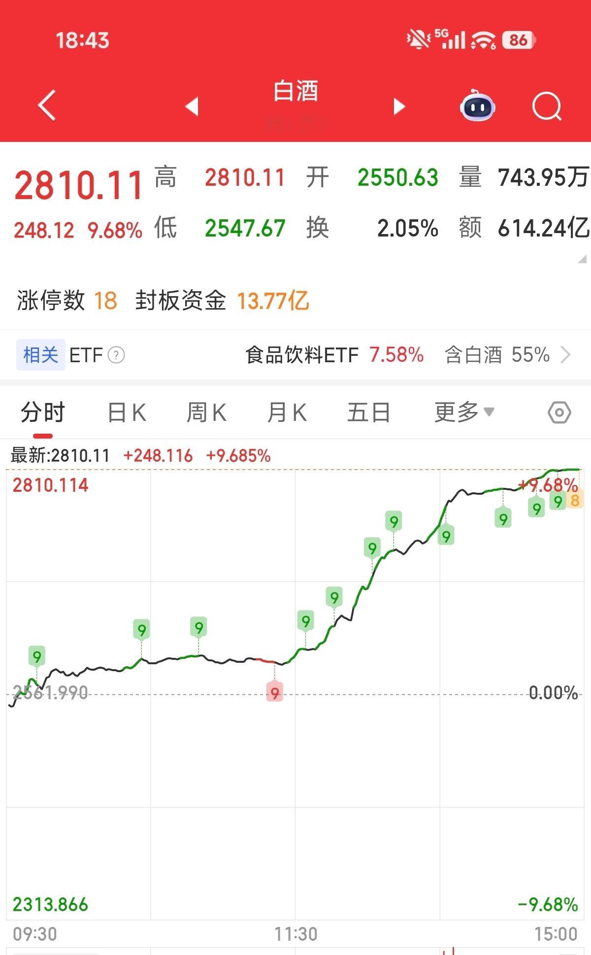 茅台茅台好久没有因为股价上涨上热搜了。今天整个白酒板块暴涨9%,茅台大涨超8%,五粮液、泸州老窖、洋河股份等涨停。房地产今天也大涨,这个月一路下跌的融创涨了近30%。今天是老登资产扬眉吐气的一天,不知道能不能延续两天老张杂谈