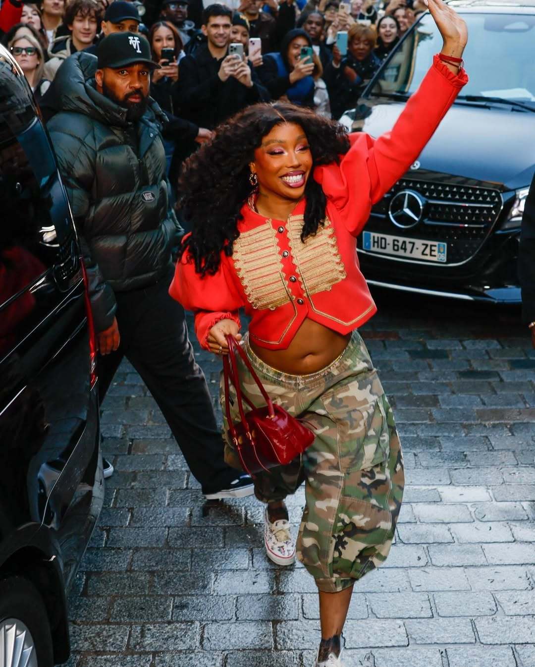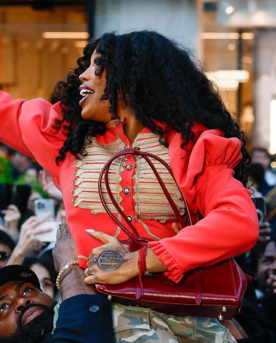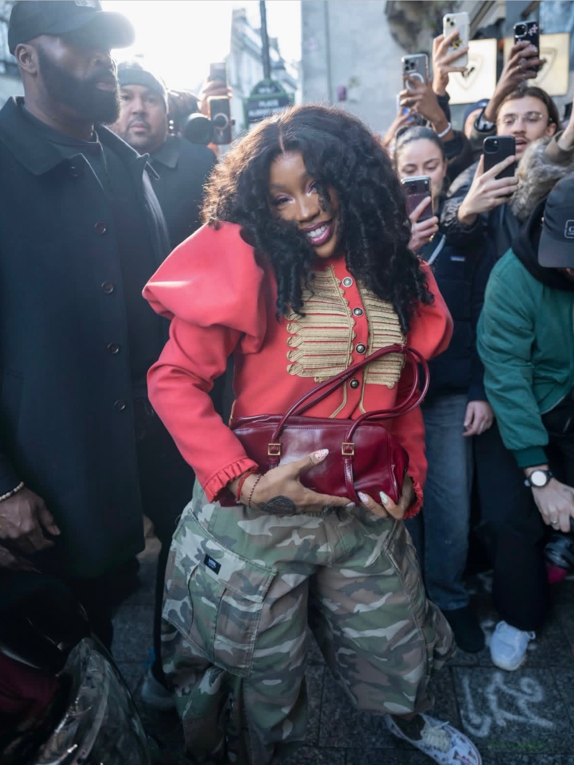 美国流行歌手SZA现身巴黎街头,惊喜演绎了全球设计师品牌Fabrique 的合作意大利设计师Sophie Jousse 系列 Monti 樱桃色法棍包,红色夹克外套配酒红色法棍包既保持了自己的风格,又延续一贯的好品味,时髦精真的很会选单品!