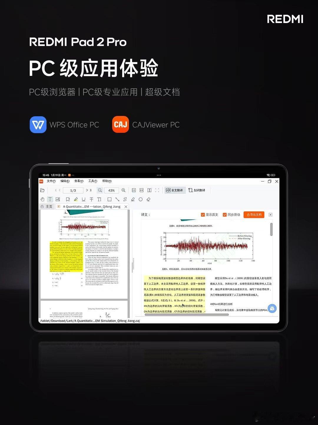 REDMIPad2Pro 硬件升级只是基础海量应用、教辅,让体验比肩旗舰平板① PC 级应用体验,PC 级浏览器,超级文档② 小米教育中心,新增 5.3 系列教辅③ 搭载小米澎湃OS 3,支持超级小爱