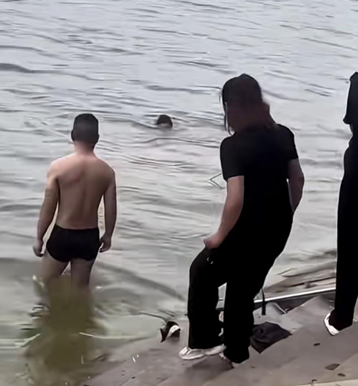 看似漫不经心,实则冷静专业 男孩在河边玩耍, 一不小心掉进了河里,大哥路过看见很淡定的下水救人 如果真的有一天遇到落水者,必须等到落水者喝得差不多没力气扑腾的时候再靠近他 必须得等他失去意识才能下去捞,落水者但凡还能动一下,你就绝不能靠近,你要是被他抓住了,他为了上浮呼吸空气会拼命的把你往水下按。