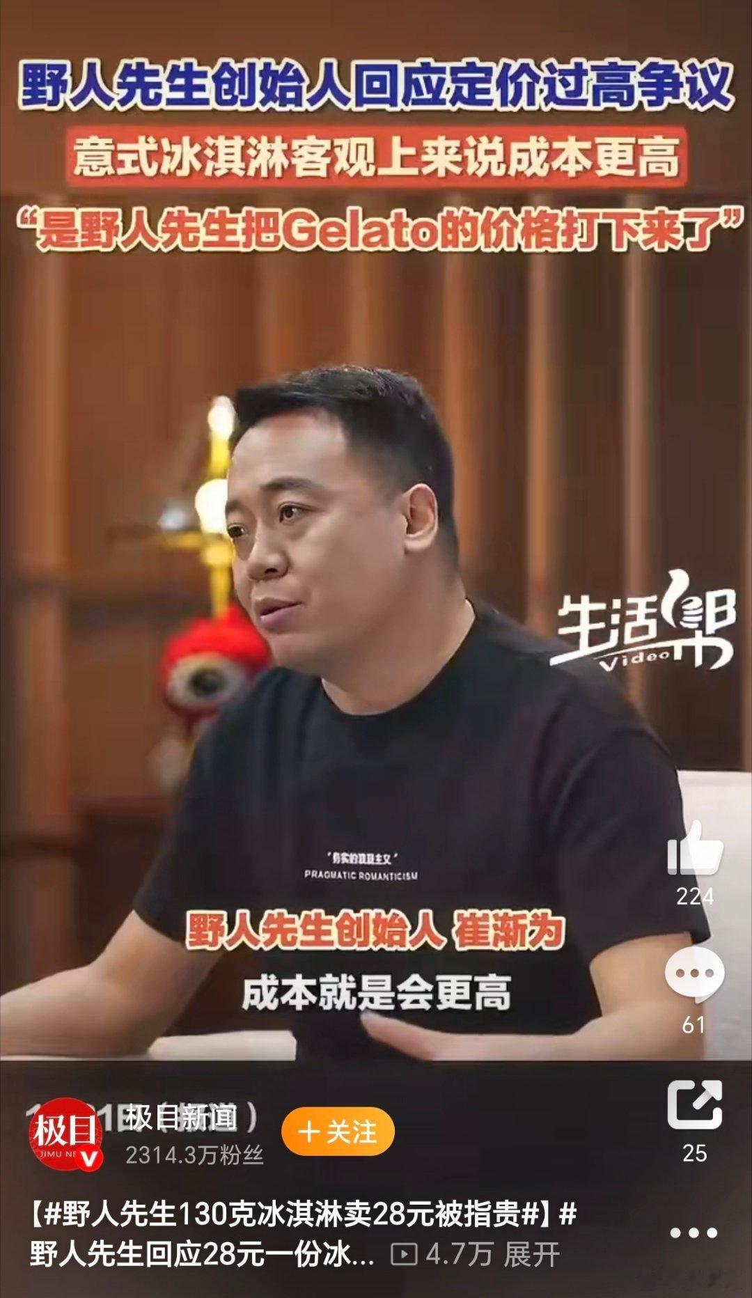 野人先生130克冰淇淋卖28元被指贵“前有雪糕刺客”钟薛高,今有野人先生叫什么来着?吃过一次,正如网友说的那样确实齁甜。。。