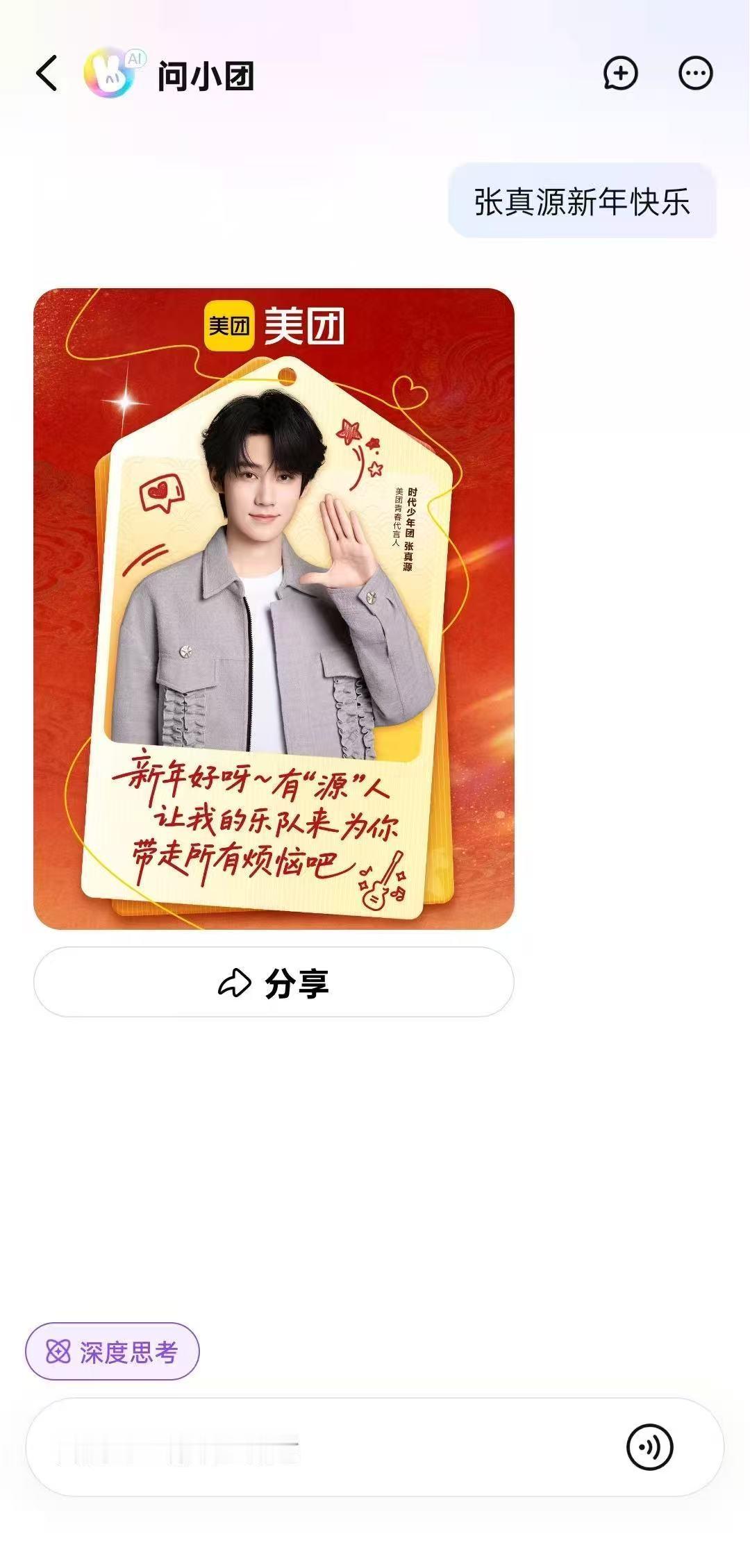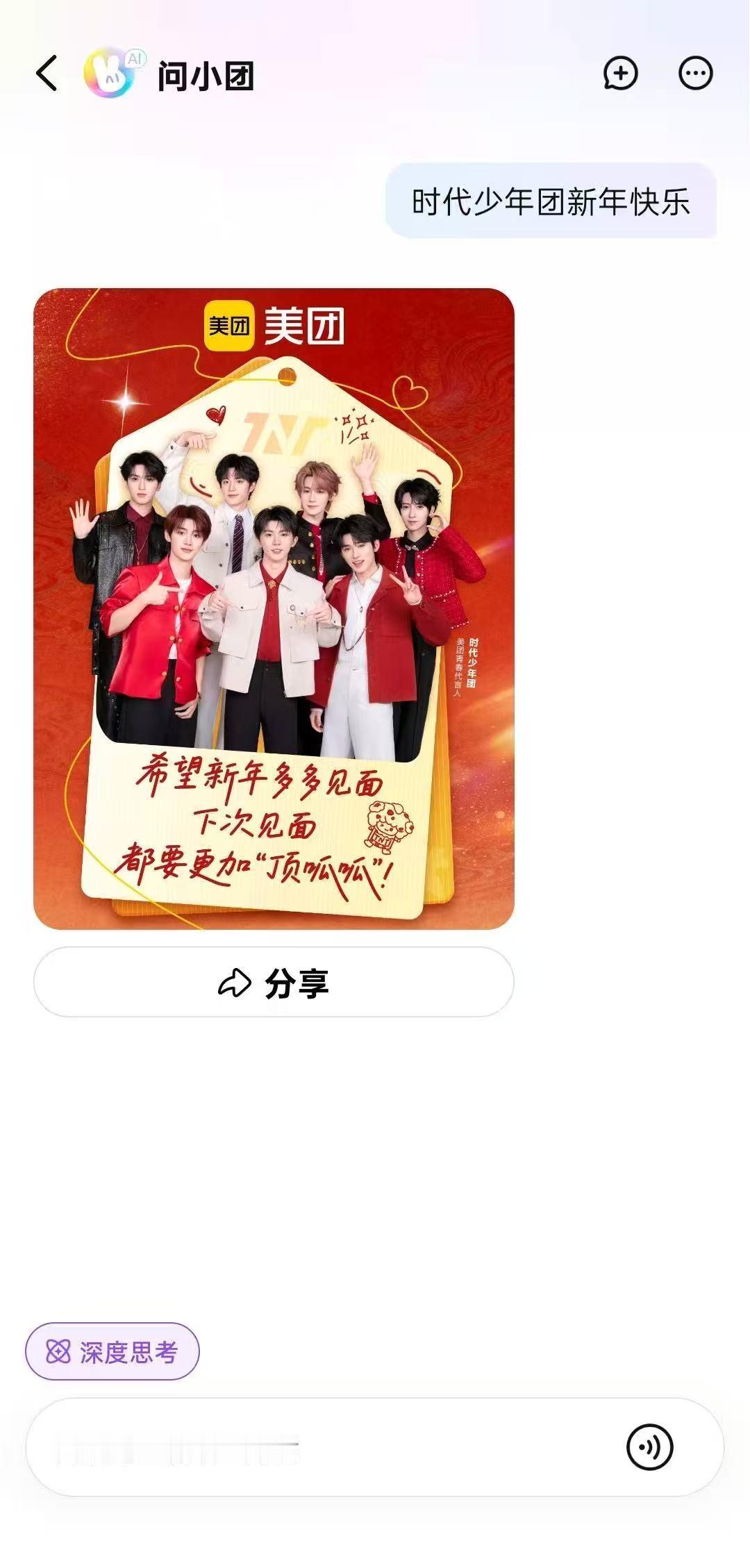 时代少年团老式小孩生活问题问美团都安排被时代少年团老式小孩圈粉,又被美团狠狠拿捏!搜“时代少年团新年快乐”,解锁全员祝福签,每一句都真诚又治愈。别只记得抽签,问小团更是生活万能管家,聚餐选店、出行规划、买药点外卖,一站式搞定,新年幸福感直接拉满。