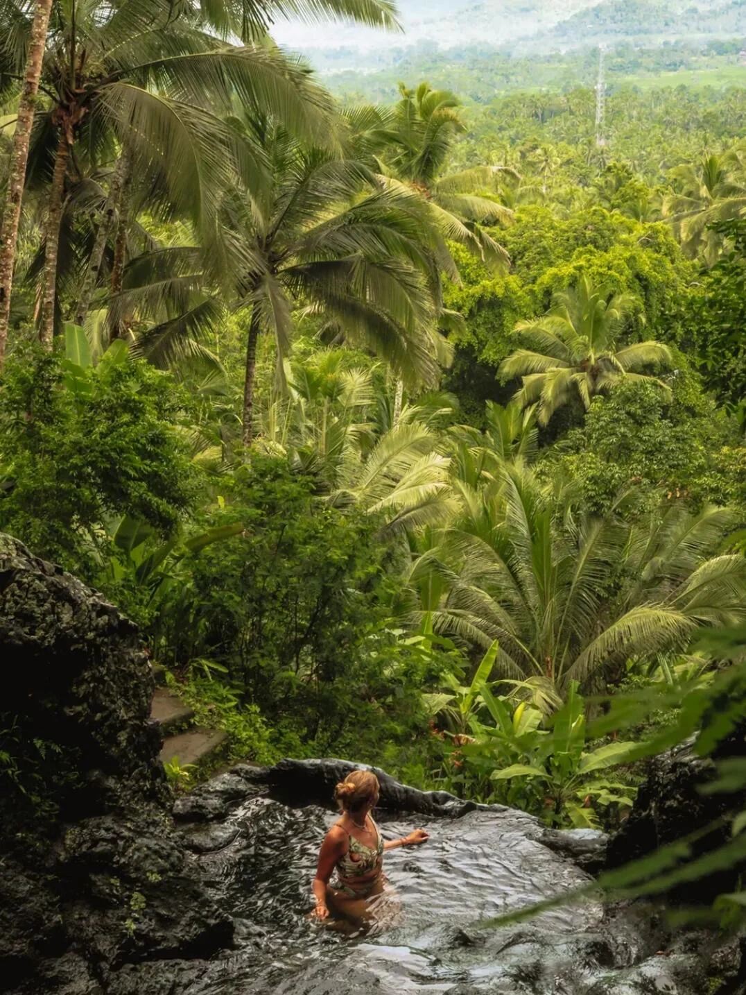 图⑬Gembleng :天然水潭,周围被郁郁葱葱的热带雨林包围,远处云雾缭绕,美到失语