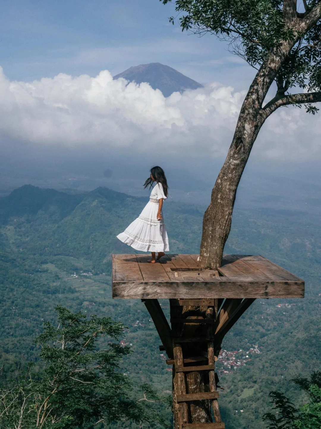 图⑧Lahangan Sweet :巴厘岛相当有名的一棵树,爬上去可以欣赏到黄绿交错的稻田、迷人的蓝色海岸线和阿贡火山🌋