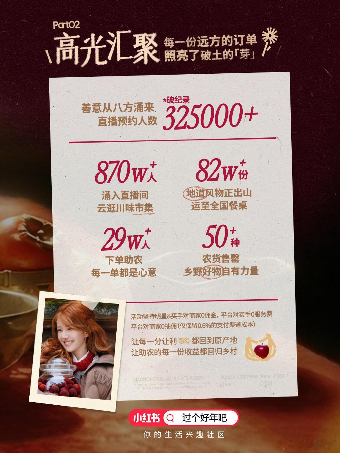 赵露思助农直播官方战报🈶,870万场观人数,82万份订单,50种农货售罄,好惊