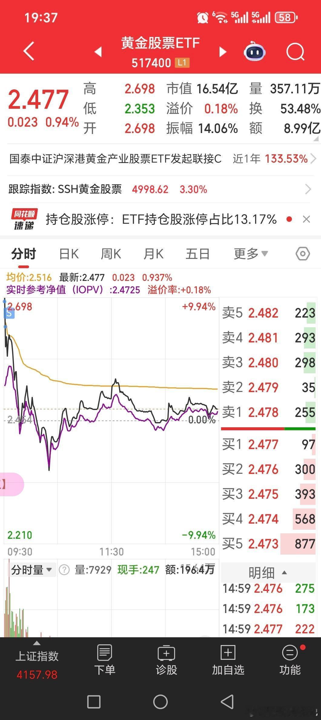 徒弟这个黄金股etf卖的如何??两天16点到手!!!!三四次42点啊!!!金价关晓彤听分手歌100多遍鹿晗知道吗