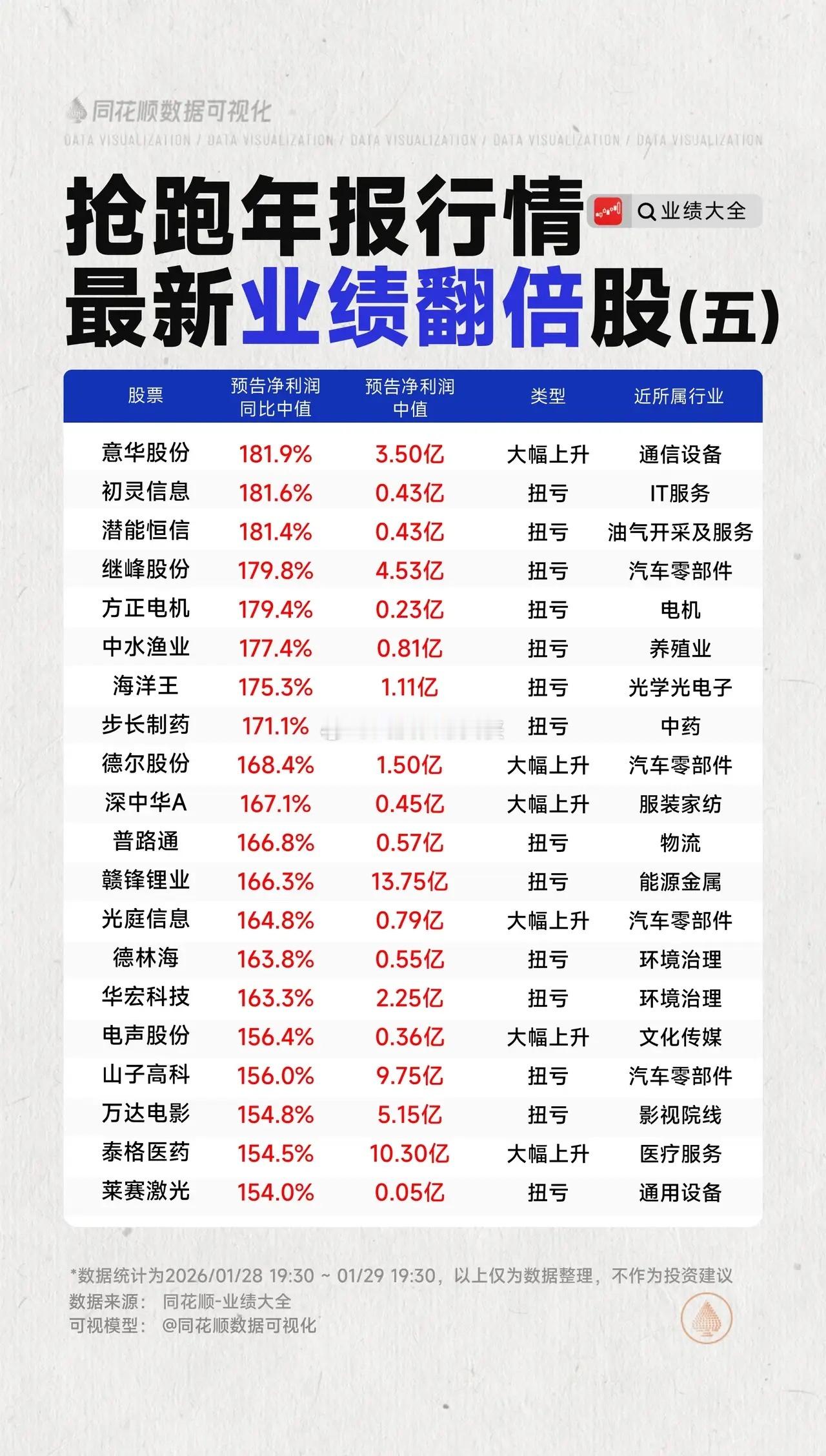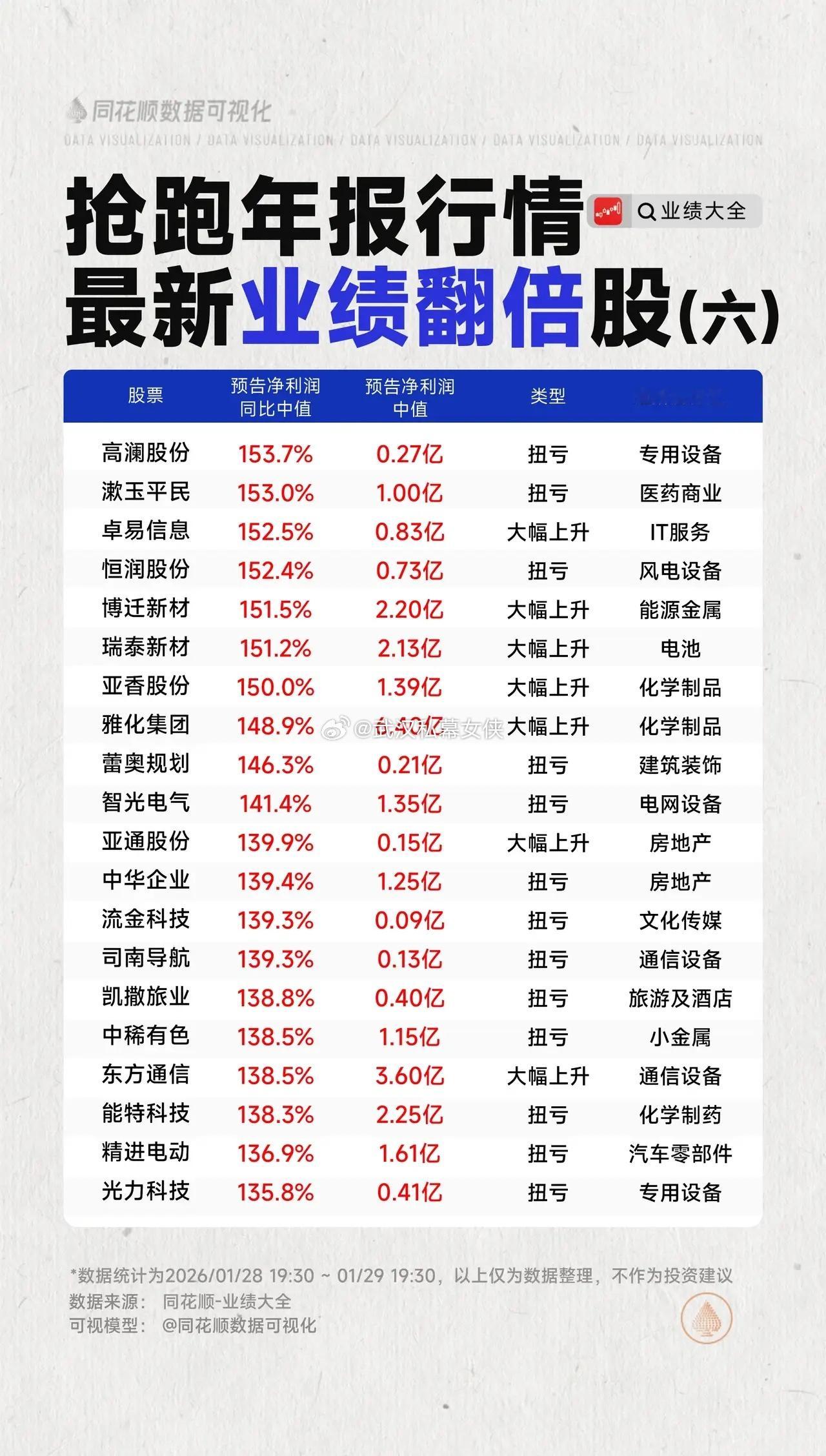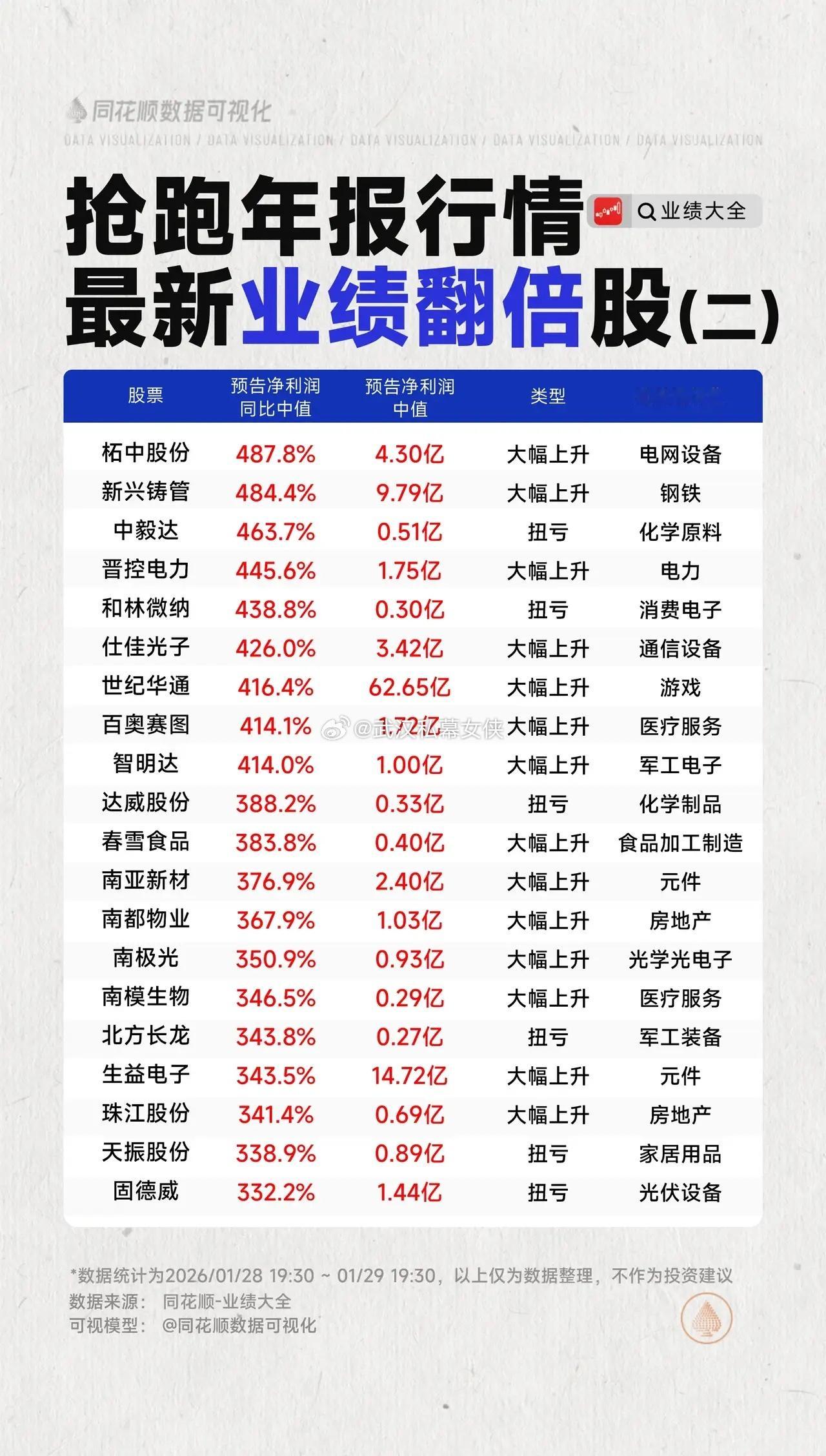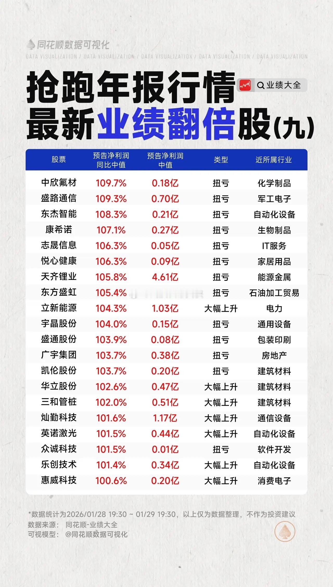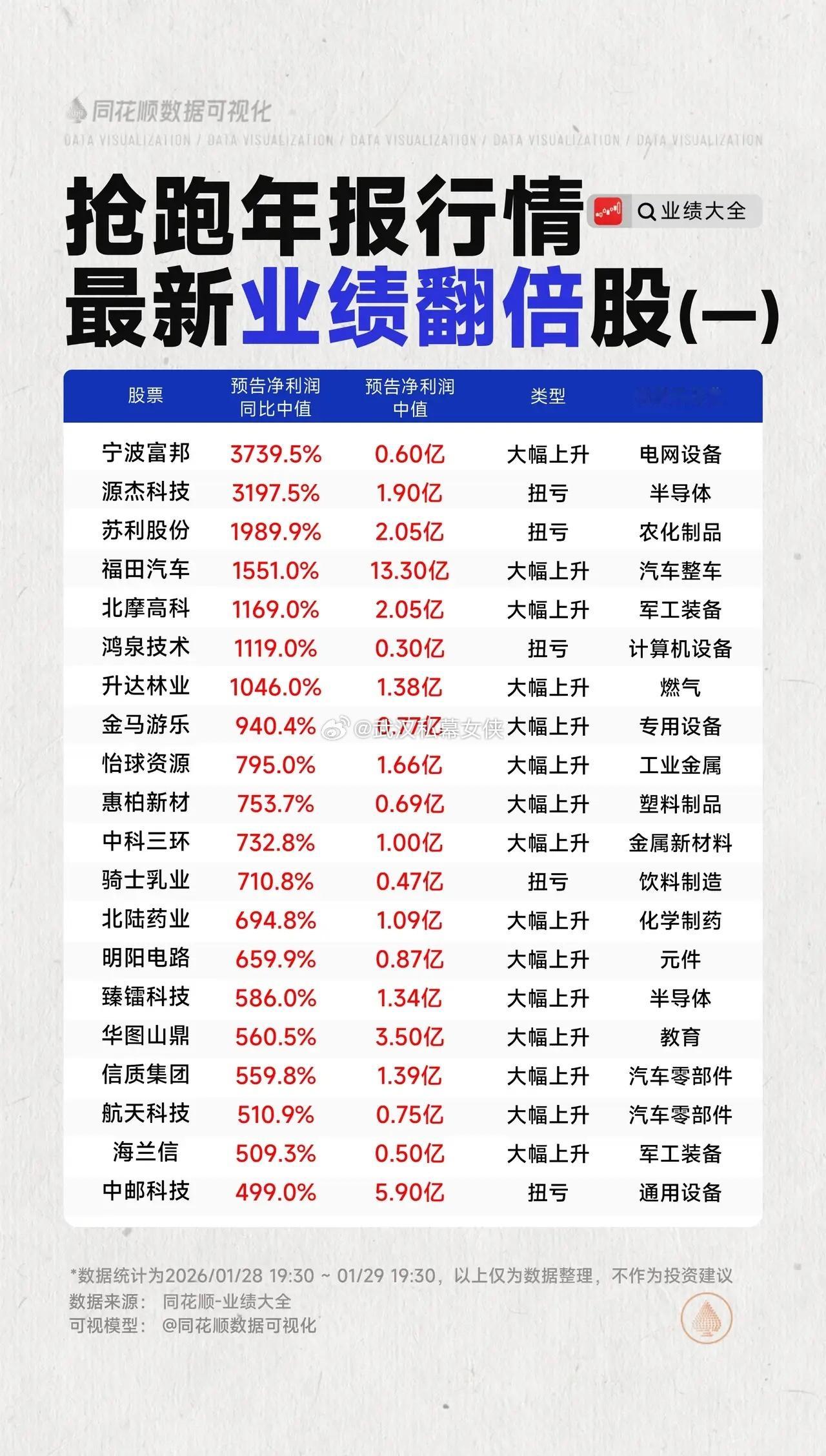 抢跑年报行情,最新业绩翻倍股梳理 2025年报披露财报季业绩翻倍同花顺数据可视化