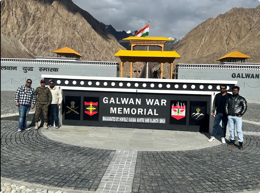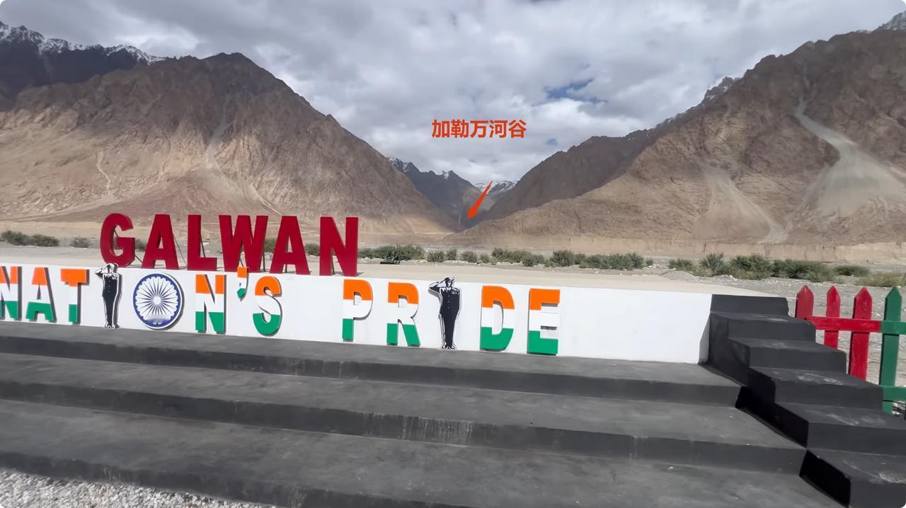 加勒万河谷最新卫星照片显示: 印度在加勒万大河口正对面修建了一座加勒万战争纪念馆,用于纪念在2020年6月份的中印加勒万打架事件中(我们叫冲突,阿三叫战争),被我们打死的20名士兵。 现在这个地方已成了印度的边境旅游打卡点,有很多印度驴友骑行到加勒万河口来打卡拍照,通过这些驴友提供的照片和无人机航拍视频,我们可以从印度那边的角度看到加勒万大河口真实的地形地貌,还能看到印度在什约克河上修建的通往加勒万河谷的钢铁桥梁。