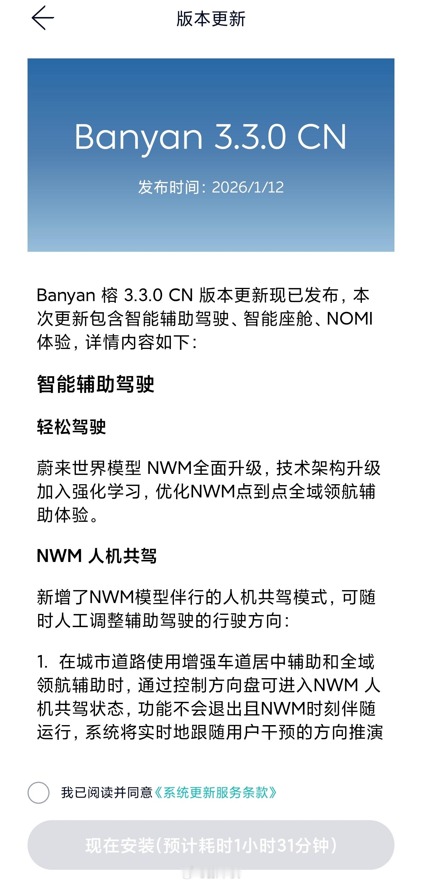 终于给我推送升级包了,可惜电量不太够升级准备的要求,尴尬😅一会送完娃上学就去换个电,再升级蔚来