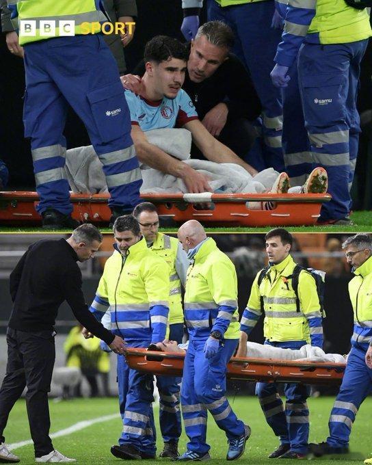 【儿子受伤】19岁的费耶诺德前锋沙奎尔-范佩西在欧联杯对贝蒂斯的比赛中替补出场,严重受伤后被担架抬下,他的父亲费耶诺德主教练范佩西第一时间查看了他的情况。