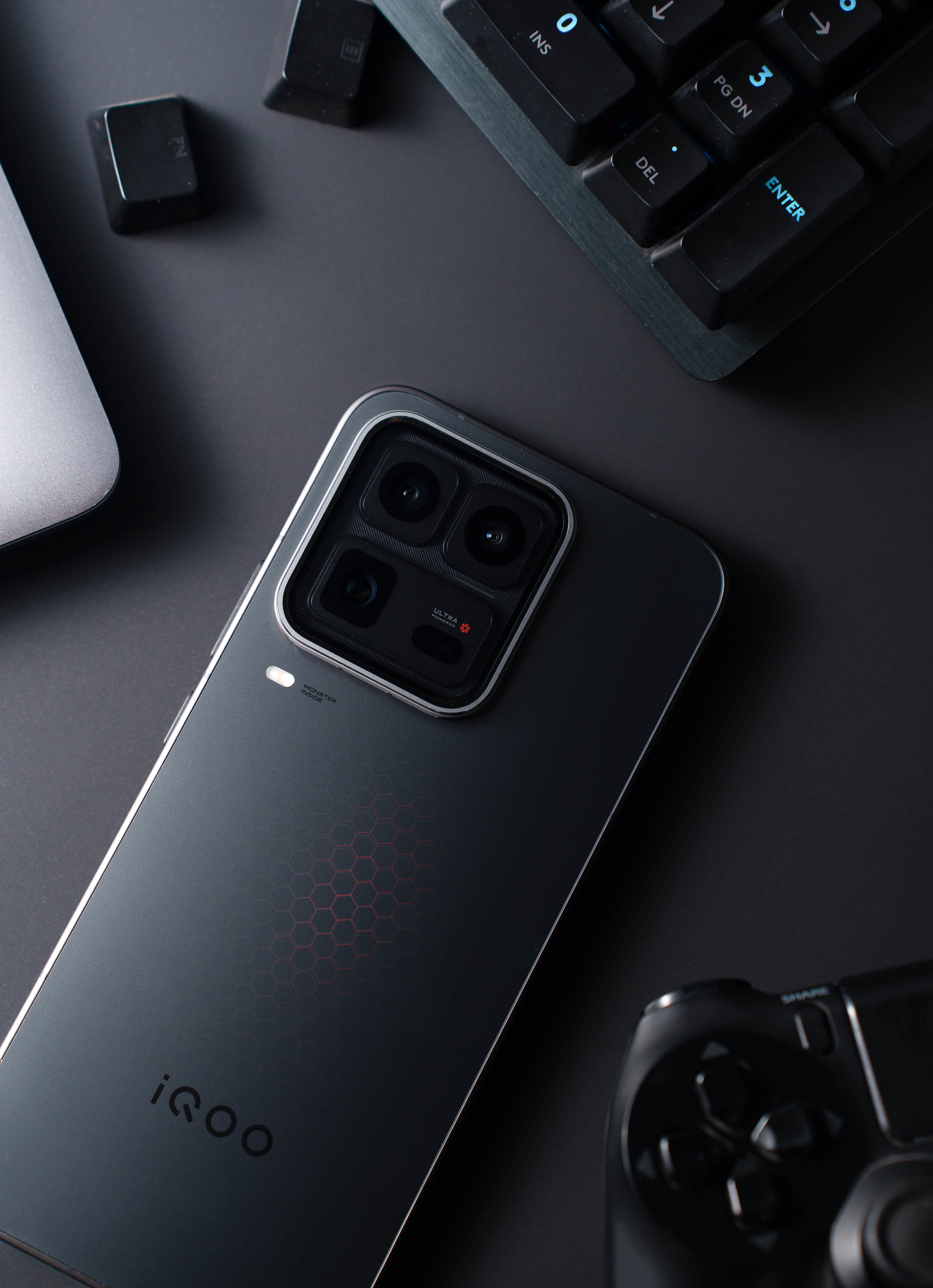 iQOO 15 Ultra「2077」|未来科幻风硬核拿捏 iQOO15Ultra外观太酷了一上手,那种低温感哑光中框的触感就让人上头——不沾指纹不滑手,长时间游戏依然清爽。背板并非单调纯黑,而是依托15层精密工艺,在光影流转间,「能量矩阵」六边形蜂巢纹理清晰浮现,科幻感与能量感拉满,是Ultra旗舰专属的设计表达,更是对经典科幻作品的硬核致敬。视觉中心是「未来舱」DECO设计,悬浮透明镜片包裹着相机模组,未来感十足;细节处的ULTRA标识,是性能旗舰的专属宣言。侧边的「能量光刃」呼吸灯才是灵魂所在,置身电竞氛围中,它能随游戏节奏唤醒光效,直接把沉浸感拉到极致。搭配L型胶囊充电头,不仅横屏充电不挡手,桌面布线也更整洁,快充回血时刻在线。从触感到光效,从设计到体验,iQOO 15 Ultra完美融合未来科技美学与Ultra旗舰基因。这,才是一款「最具未来感性能Ultra」该有的颜值与实力。