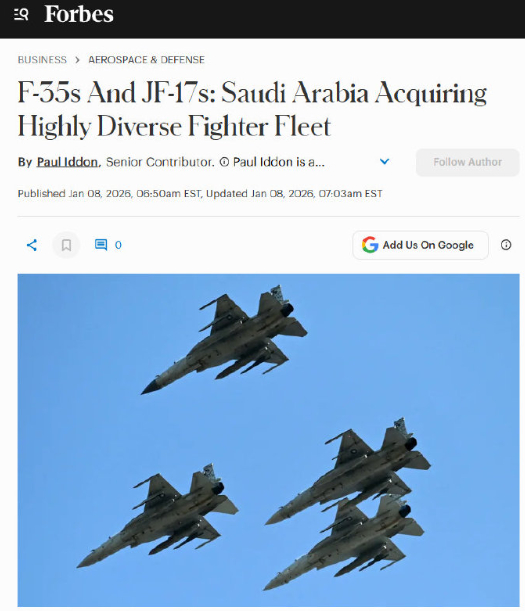 美国福布斯杂志:沙特打造全球最混搭机队,枭龙配合F35一起出战!路透社披露的信息,沙特正在与巴基斯坦商谈一笔以战机抵债的交易——用一批JF-17抵偿巴方所欠的20亿美元贷款,并额外投入约20亿美元采购配套系统,总规模可能高达40亿美元。若成真,这将是JF-17继利比亚、阿塞拜疆之后,第三次实现出口,也是首次进入海湾核心国家。更关键的是,这批飞机大概率是JF-17C Block III型。这个版本配备了有源相控阵雷达(AESA),能发射射程超过150公里的PL-15空对空导弹——这是目前全球少数几种能与美制AIM-120D抗衡的超视距武器之一。对沙特而言,这意味着即便没有F-35,也能在远程空战能力上获得实质性提升。2025年以色列对多哈发动突袭后,海湾国家的安全焦虑陡增。沙特一方面加速推进F-35采购计划——特朗普政府已表态支持向其出售最多48架;另一方面,却也在悄悄布局“非美选项”。原因很简单:F-35交付遥遥无期,且受美国国会、以色列游说集团掣肘;而JF-17不仅交付快、价格低,还能绕过直接采购中国装备的政治风险——通过巴基斯坦这个“中间人”,既拿到先进导弹,又不至于激怒华盛顿。这种“东西并用”的策略,其实早有铺垫。目前沙特空军主力包括80多架F-15SA(全球最强F-15改型)、70余架“台风”战机,还曾在2018年订购48架“阵风”——虽因德国反对部分发动机出口而受阻,但2023年又转向法国重启谈判,计划引进54架。也就是说,即便不算JF-17和未来的F-35,沙特已经同时操作三种四代半战机。未来几年,如果一切按计划推进,沙特皇家空军将成为全球唯一同时装备F-35、F-15SA、“台风”、“阵风”和JF-17五种先进战斗机的空军。这不是炫富,而是一种高度理性的风险对冲——在不确定的时代,混搭,反而成了最稳妥的配置。
