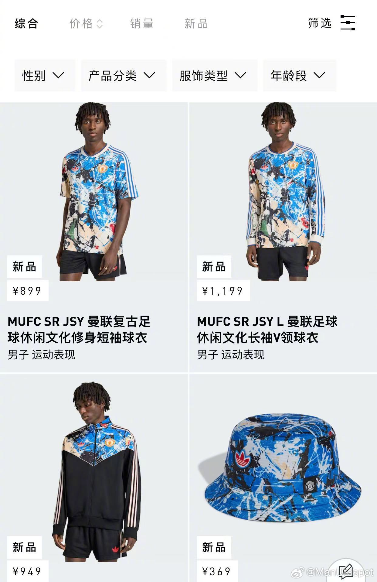 🌹Manchester United X Stone Roses刚推出不久的石玫瑰联名。当然,联名必然价格不菲,阿迪官方售价短袖899,长袖1199,外套949,帽子369,鞋子1149。ManUtdspot 曼联